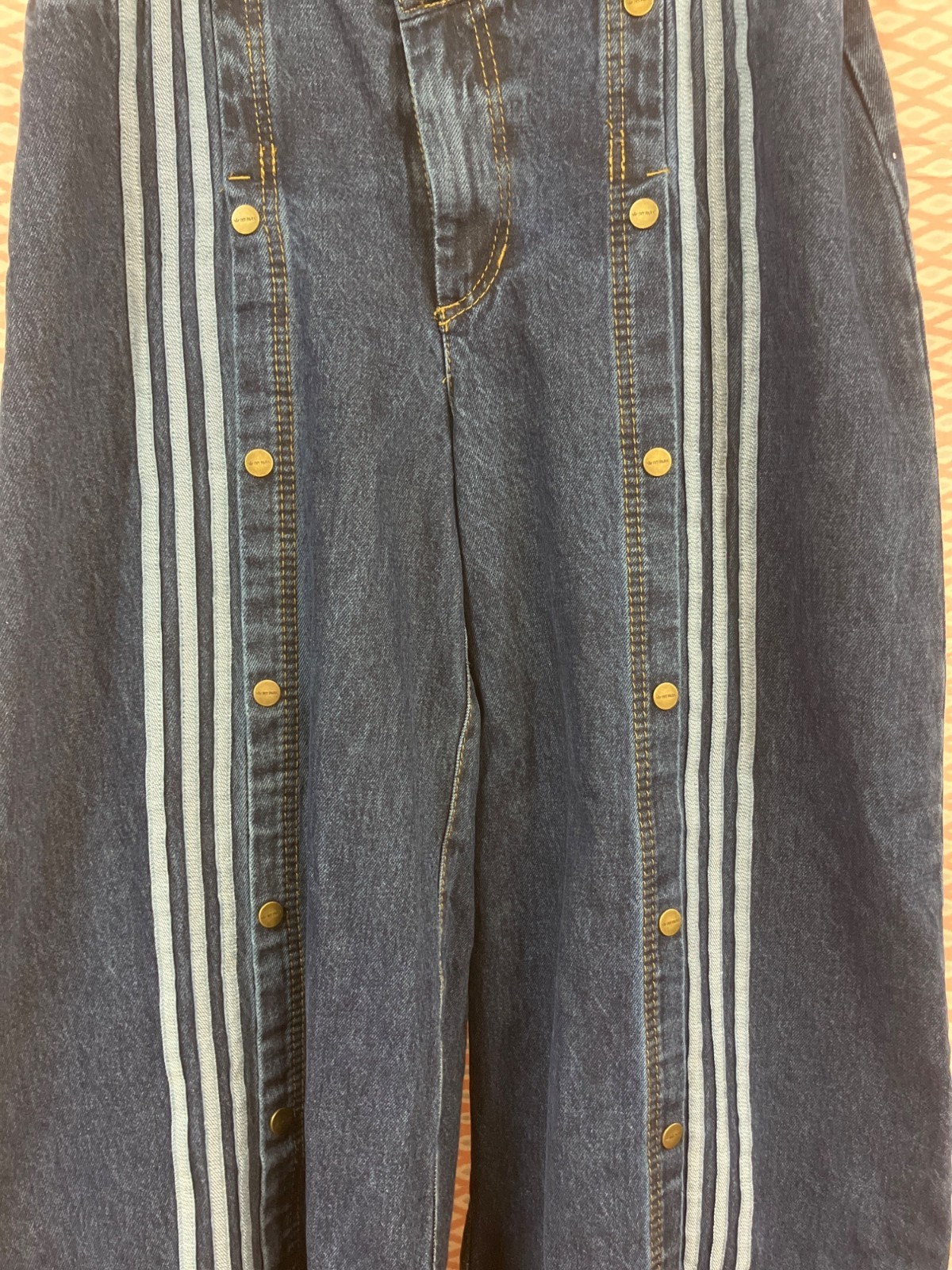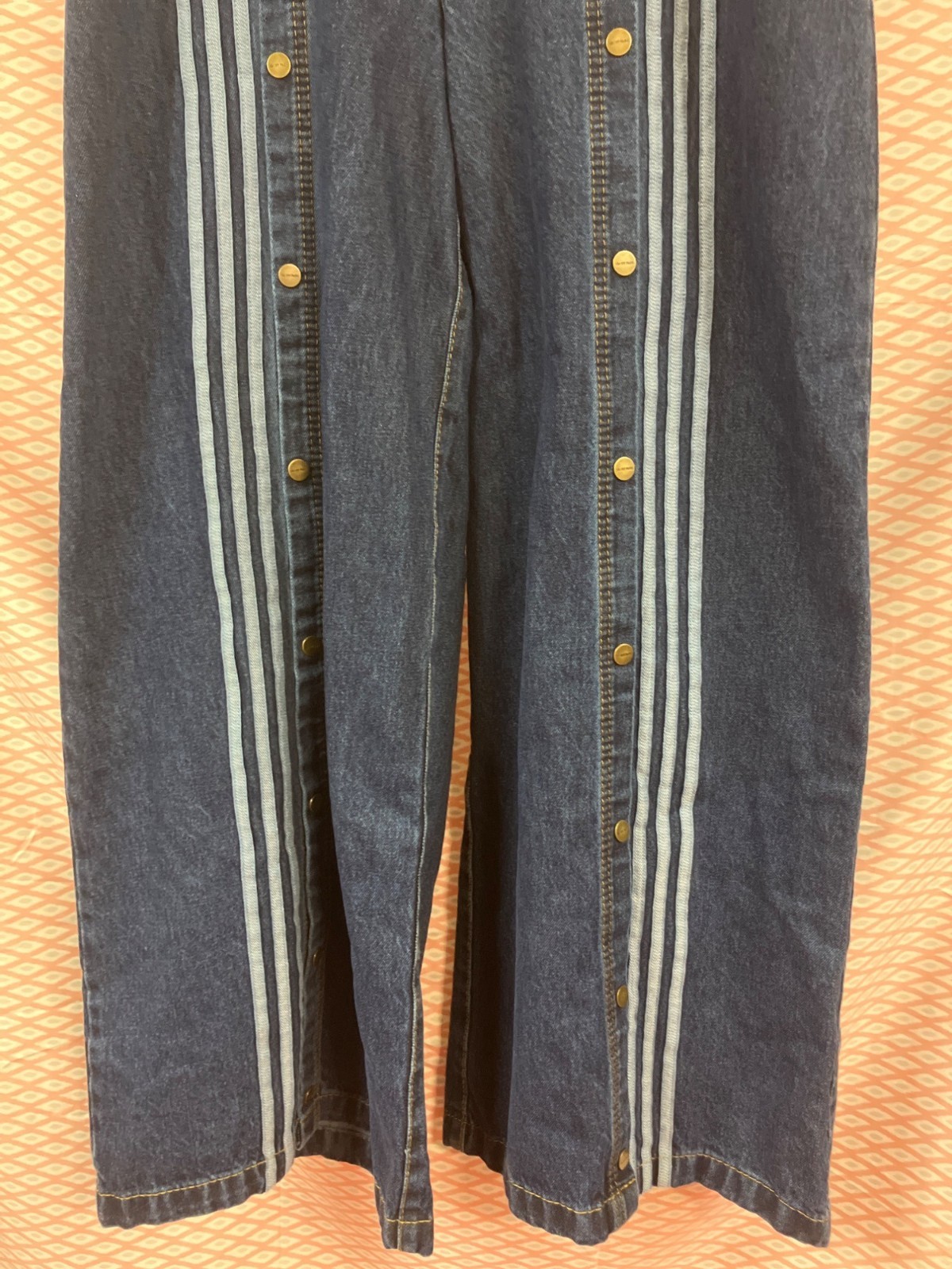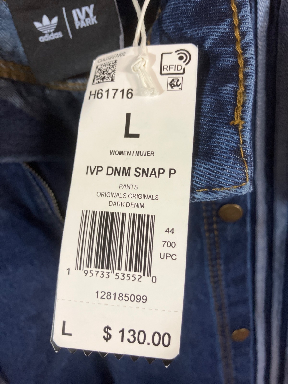 Adidas Ivy Park Womens Denim Wide-Leg Snap Pants Dark Denim Size Large NWT
