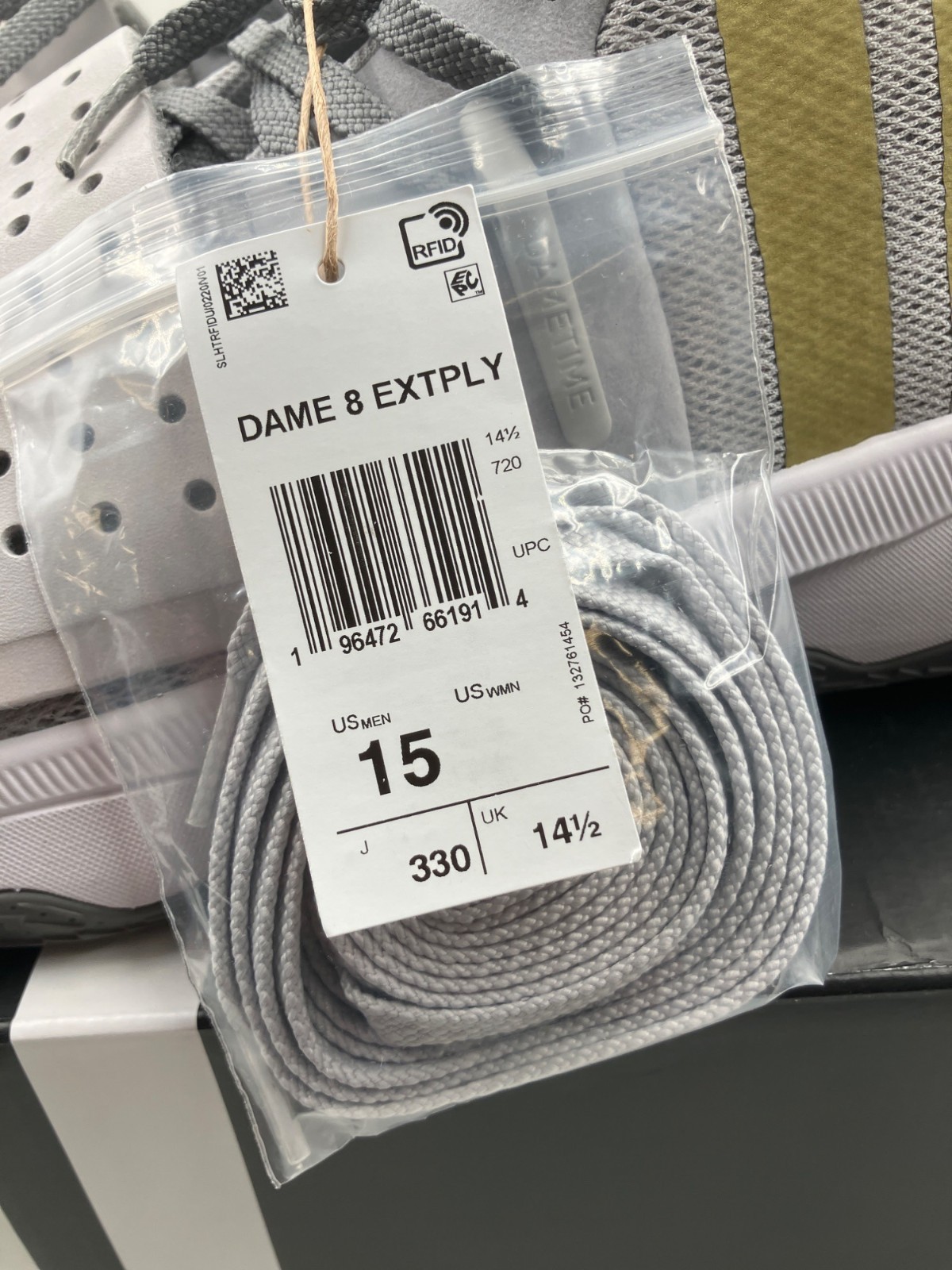 Adidas Mens Dame 8 EXTPLY 'Light Solid Grey Gold Metallic' IG8086Size 15- NIB!