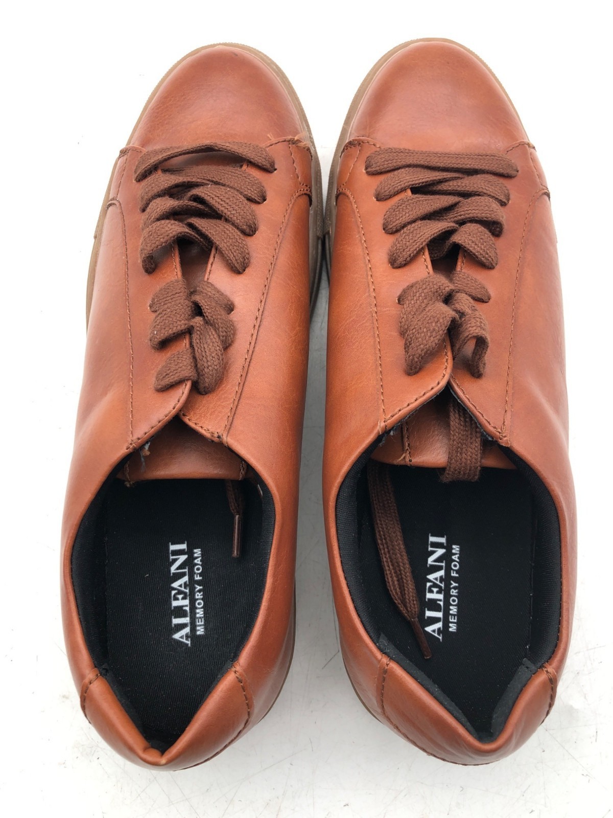 Alfani Mens Grayson Faux Leather Brown Lace-Up Sneakers- Size 8M
