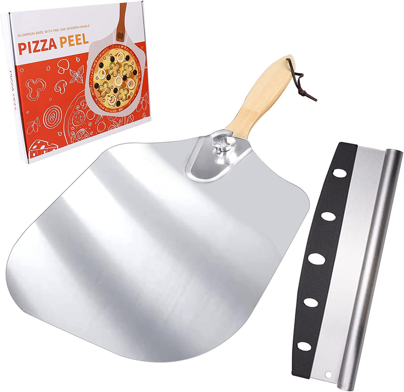 Aluminum Pizza Peel with Rocket Cutter,Pizza Spatula with OAK Foldable Wooden Ha