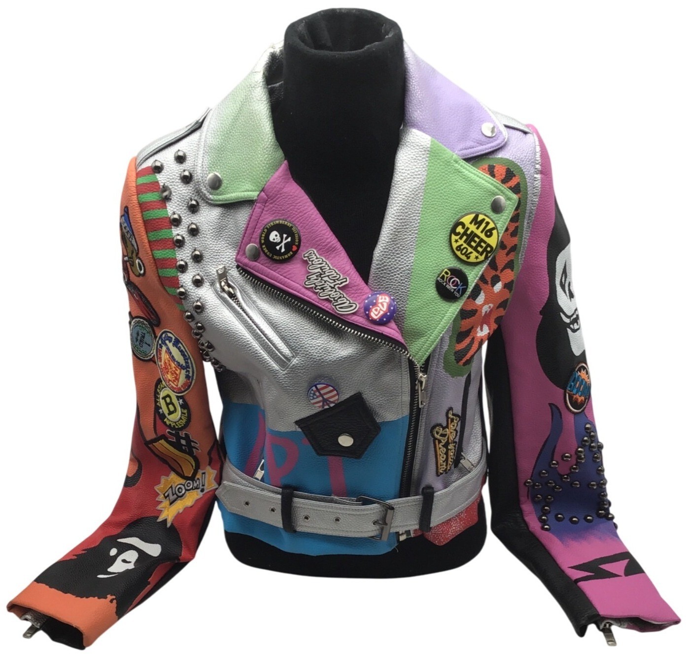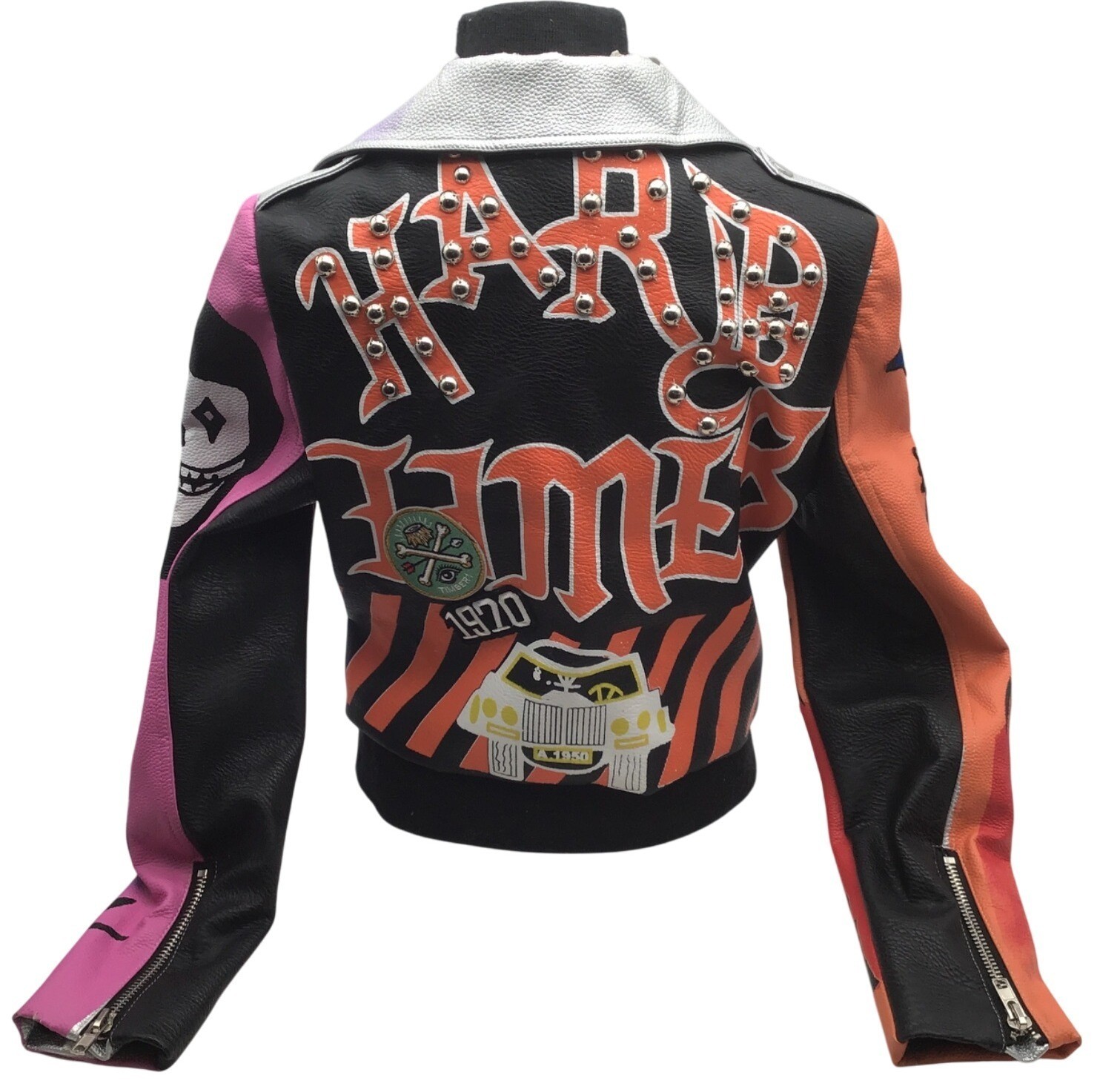 Angel Brinks Hard Times Studded Patchwork Biker Jacket Medium
