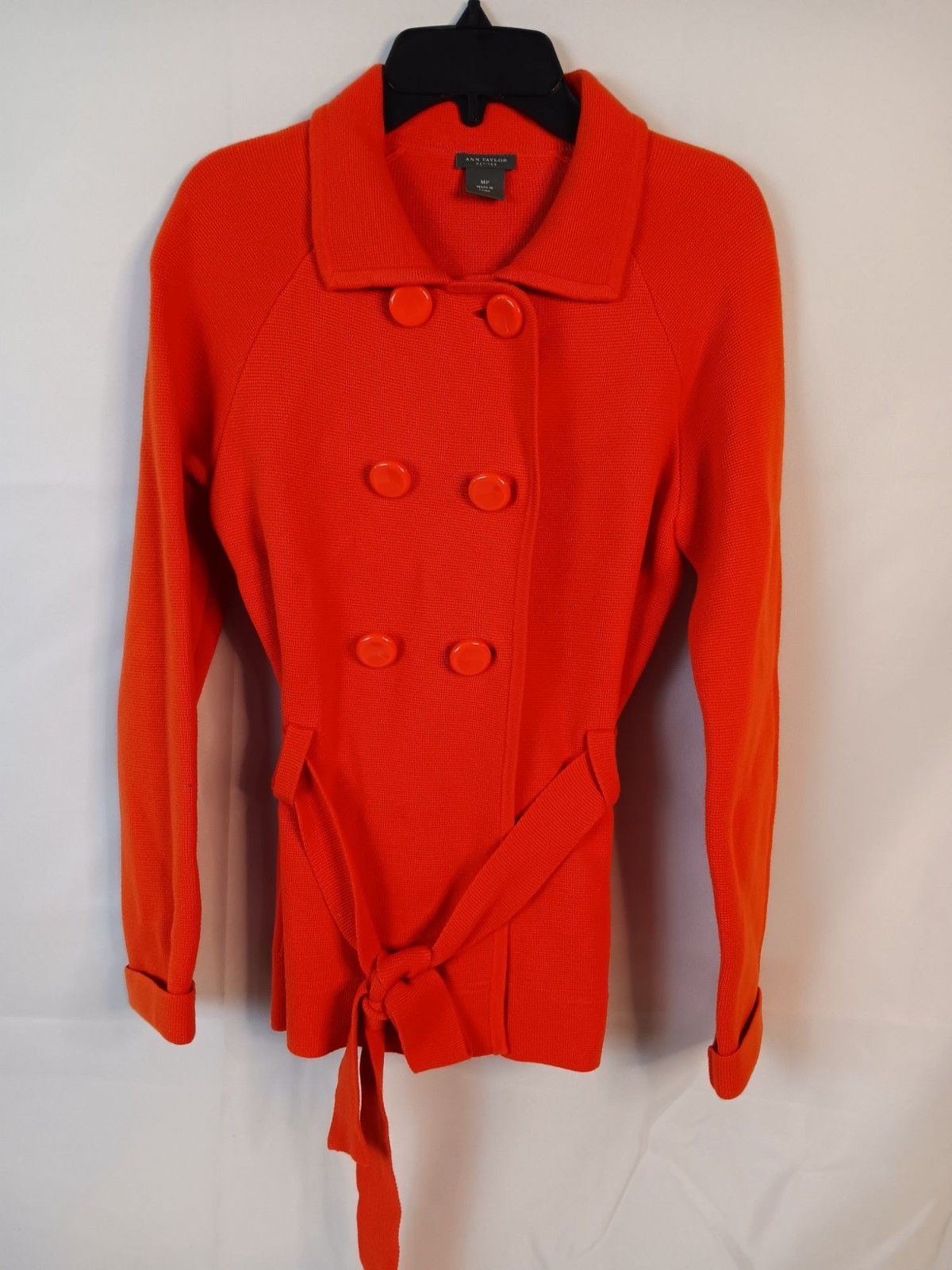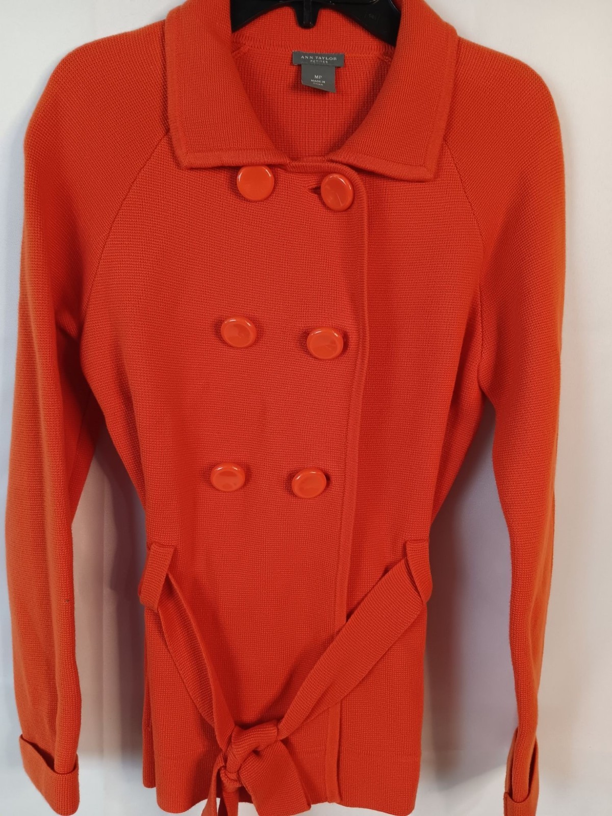 Ann Taylor Petite Double-Breasted 100% Cotton Sweater Jacket With Tie Belt In