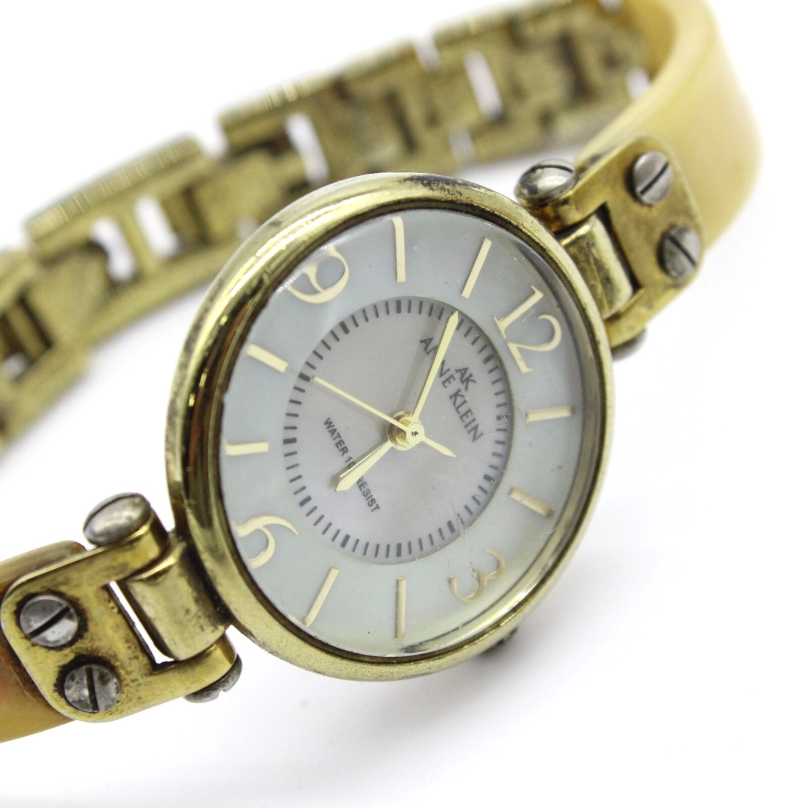 Anne Klein 10/9442 Genuine Brown Leather Gold Tone Quartz Analog Ladies Watch