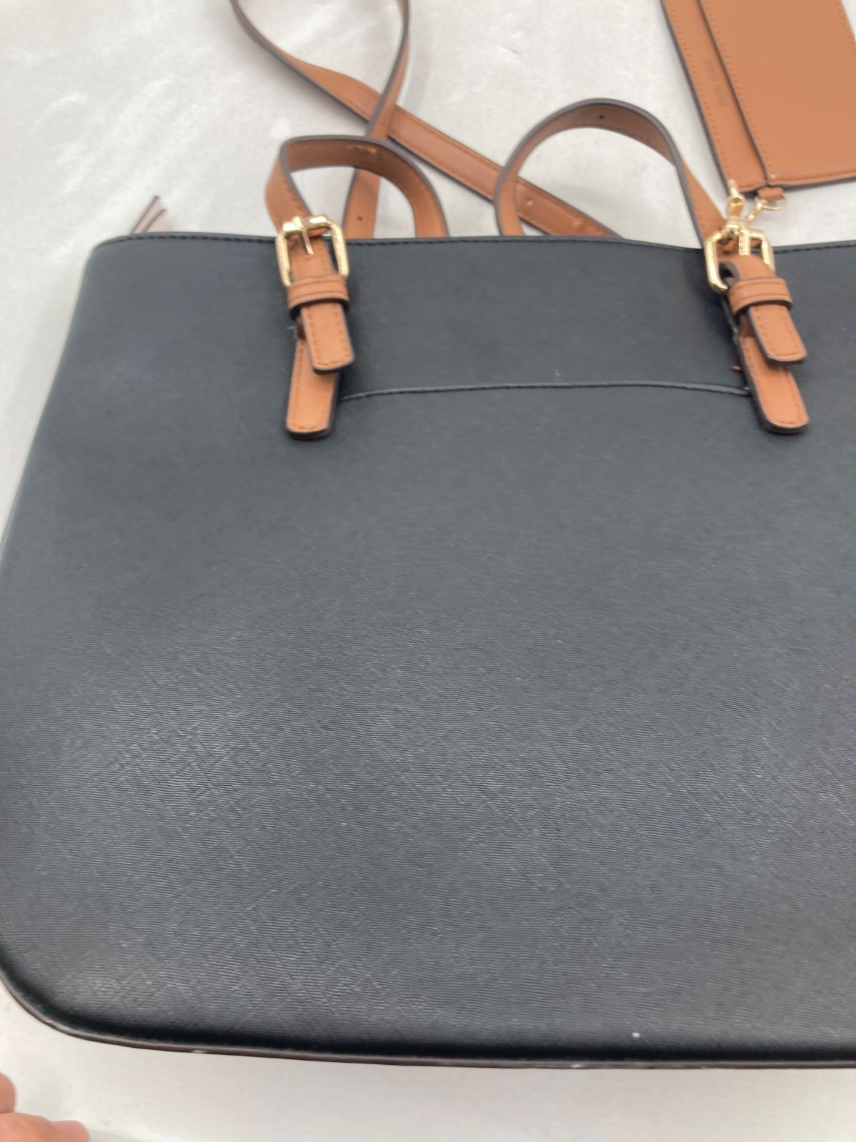 ANNE KLEIN BLACK AND TAN TOTE BAG WITH CARD WALLET