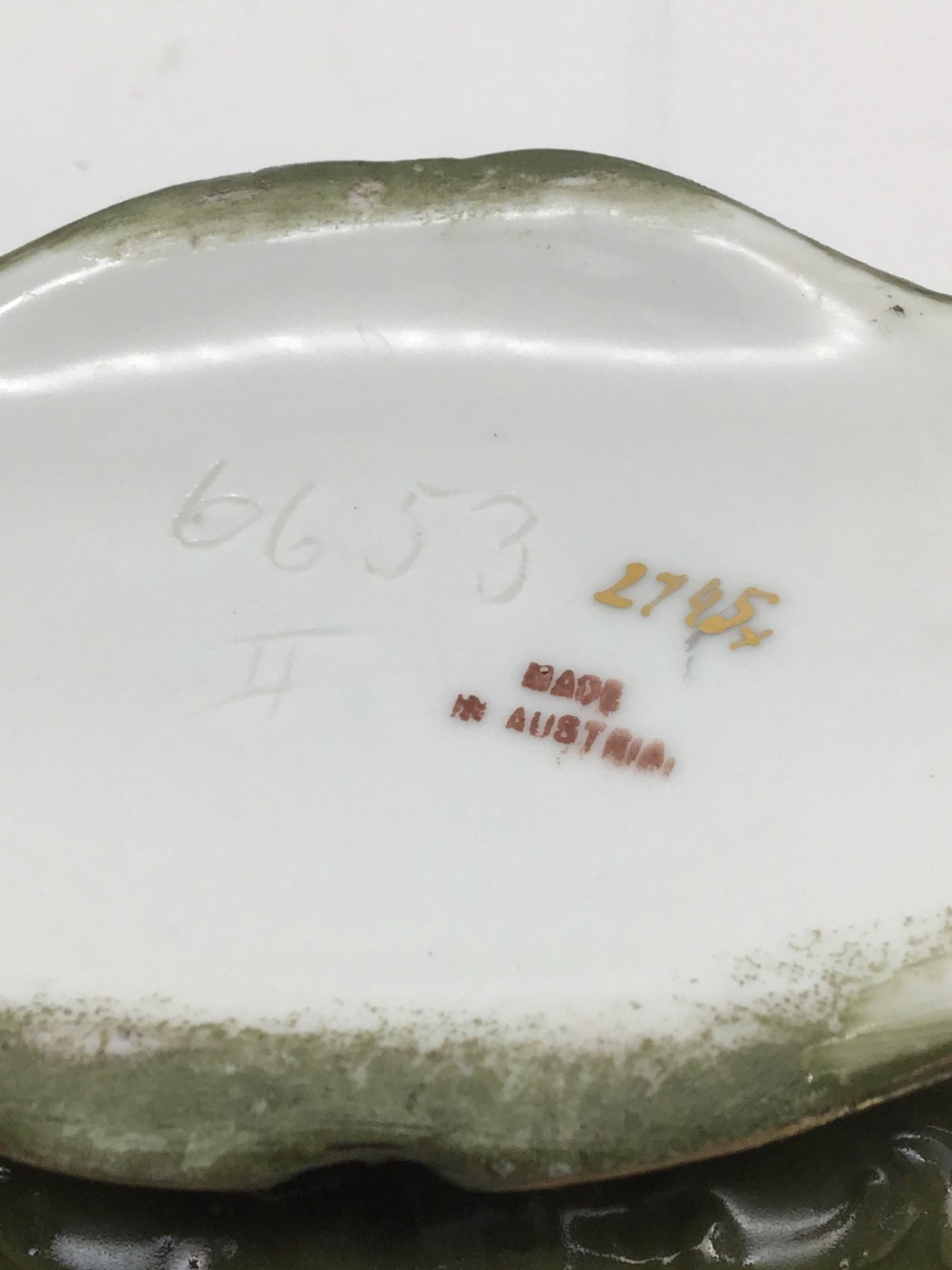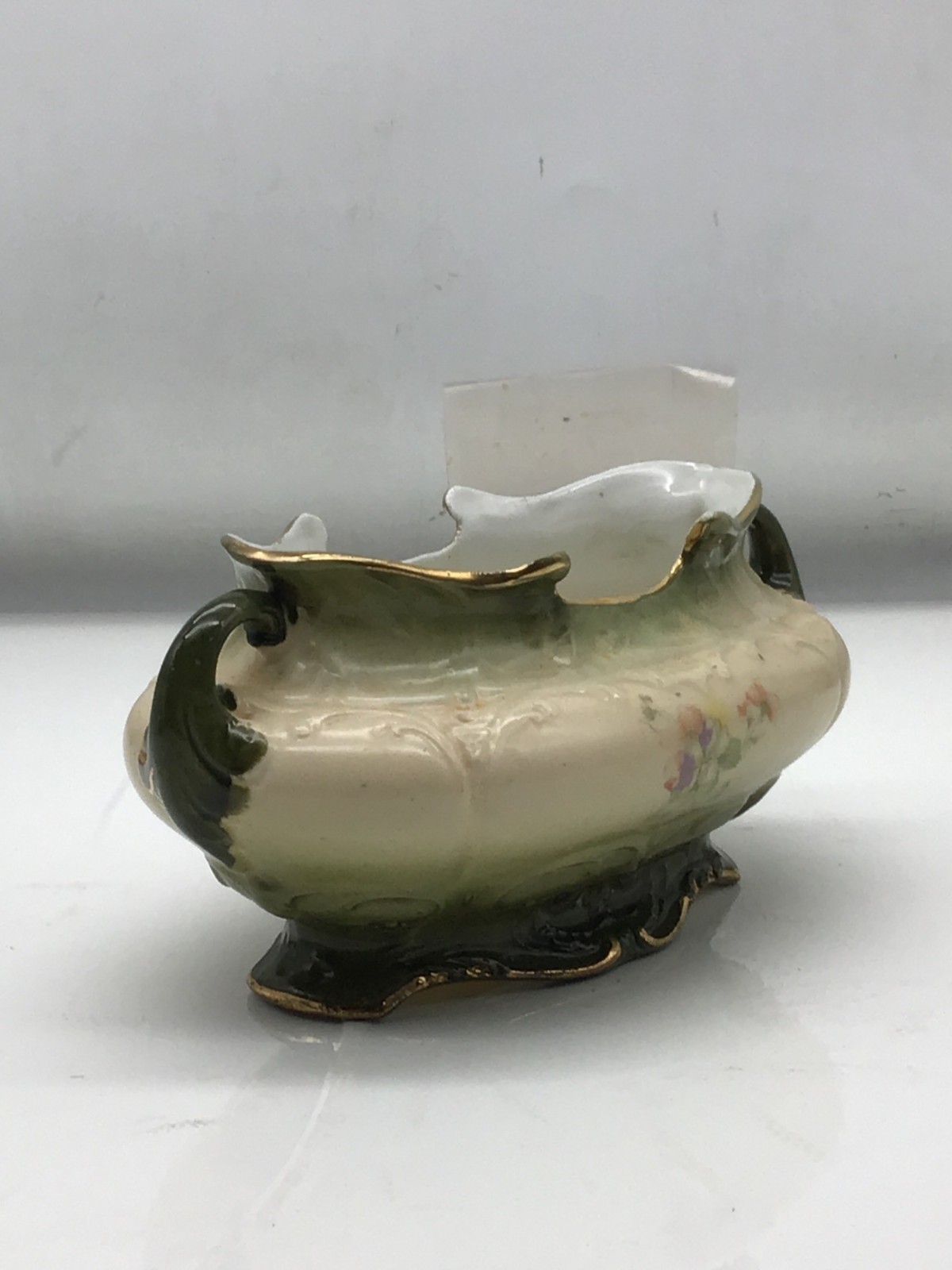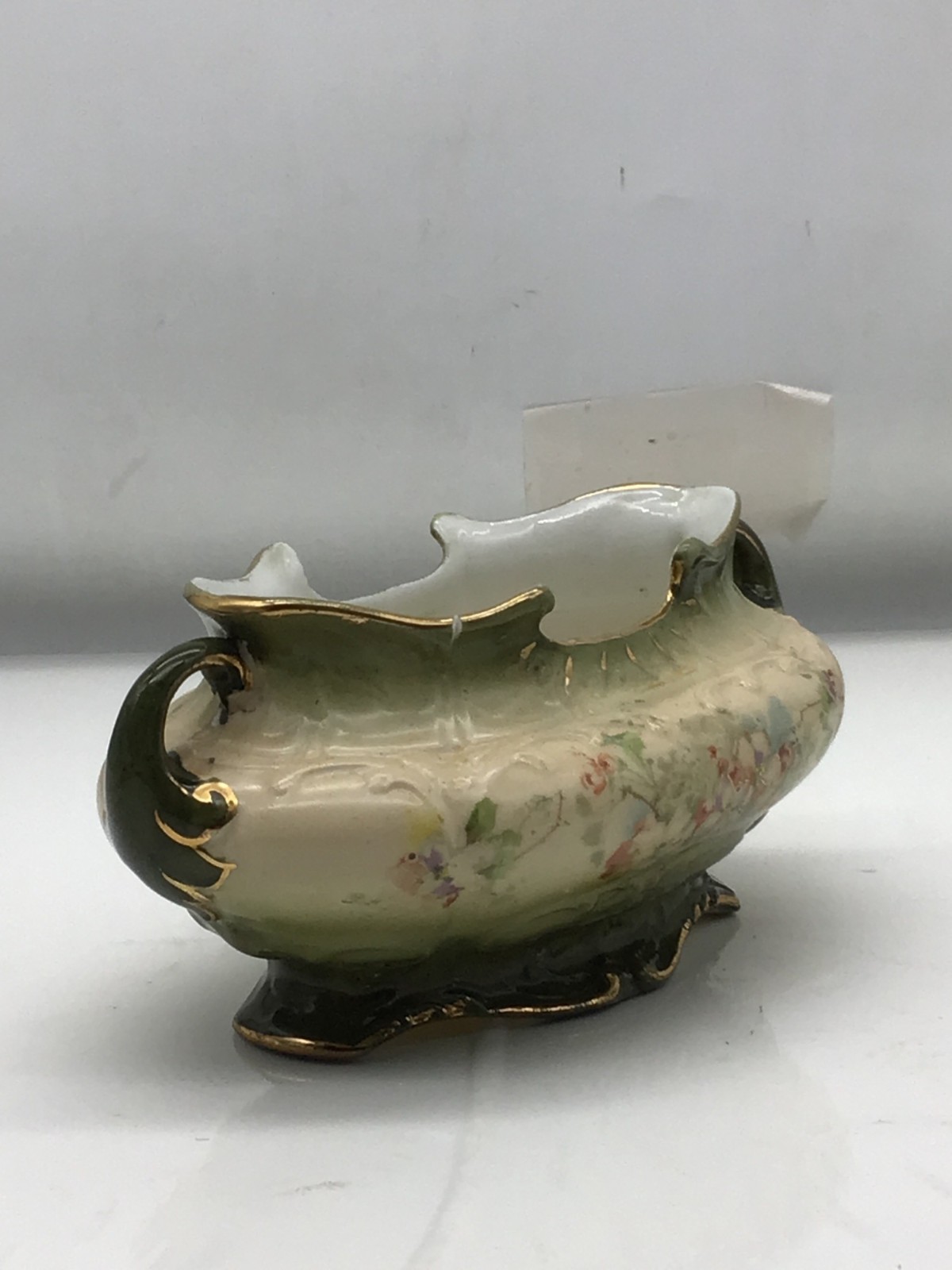 Antique Austrian Glass Green & White Oval Shape Decor Bowl w/ 2 Handles