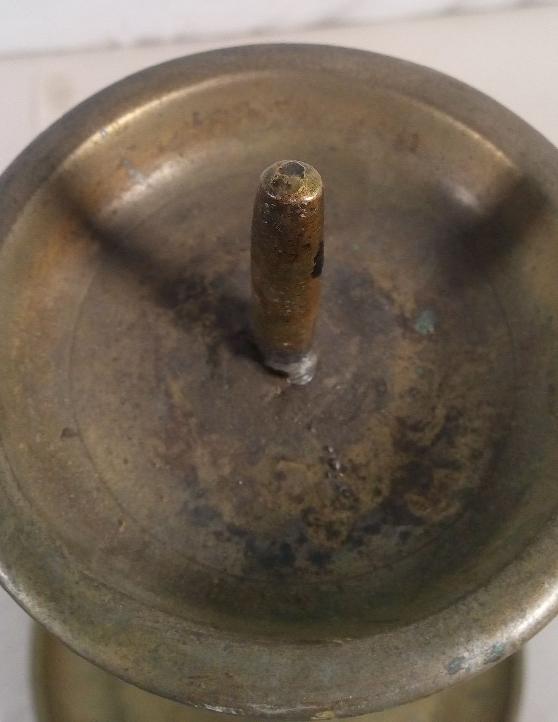 Antique Brass Candle Holder With Engraved Detailing