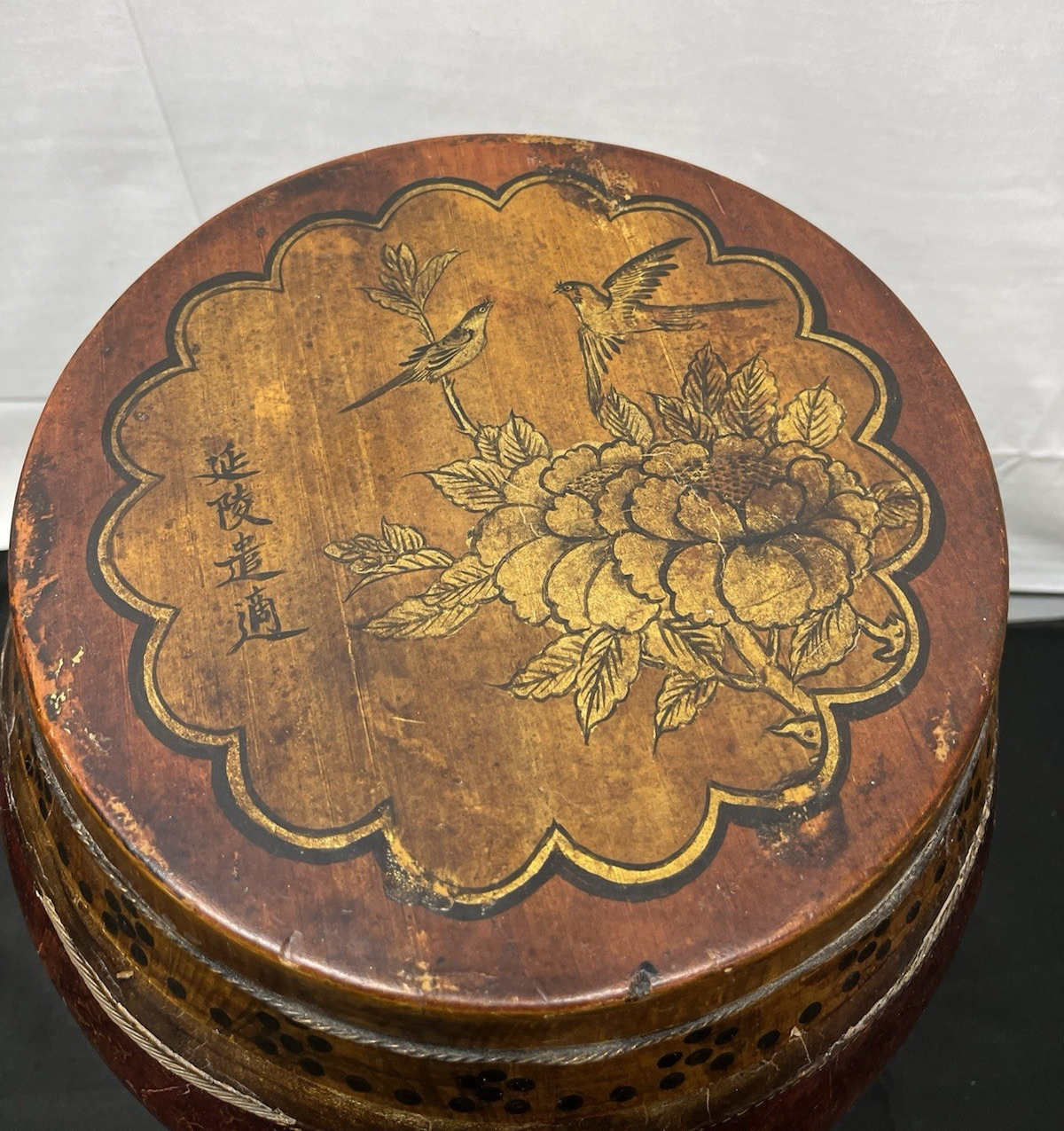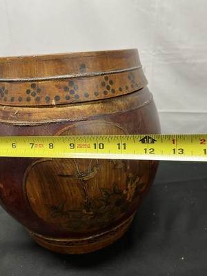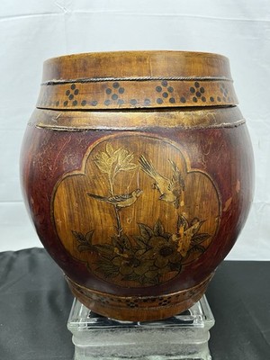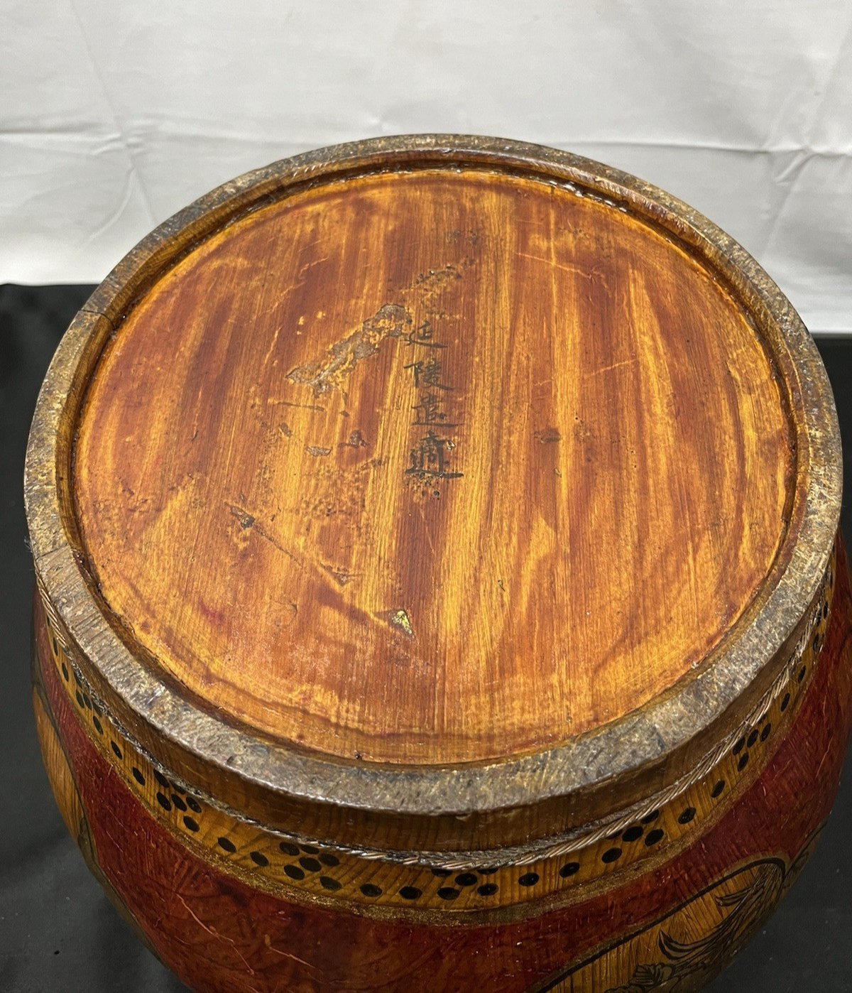 Antique Chinese Rice Barrell Hand Painted with Scholarly & Natural Themes