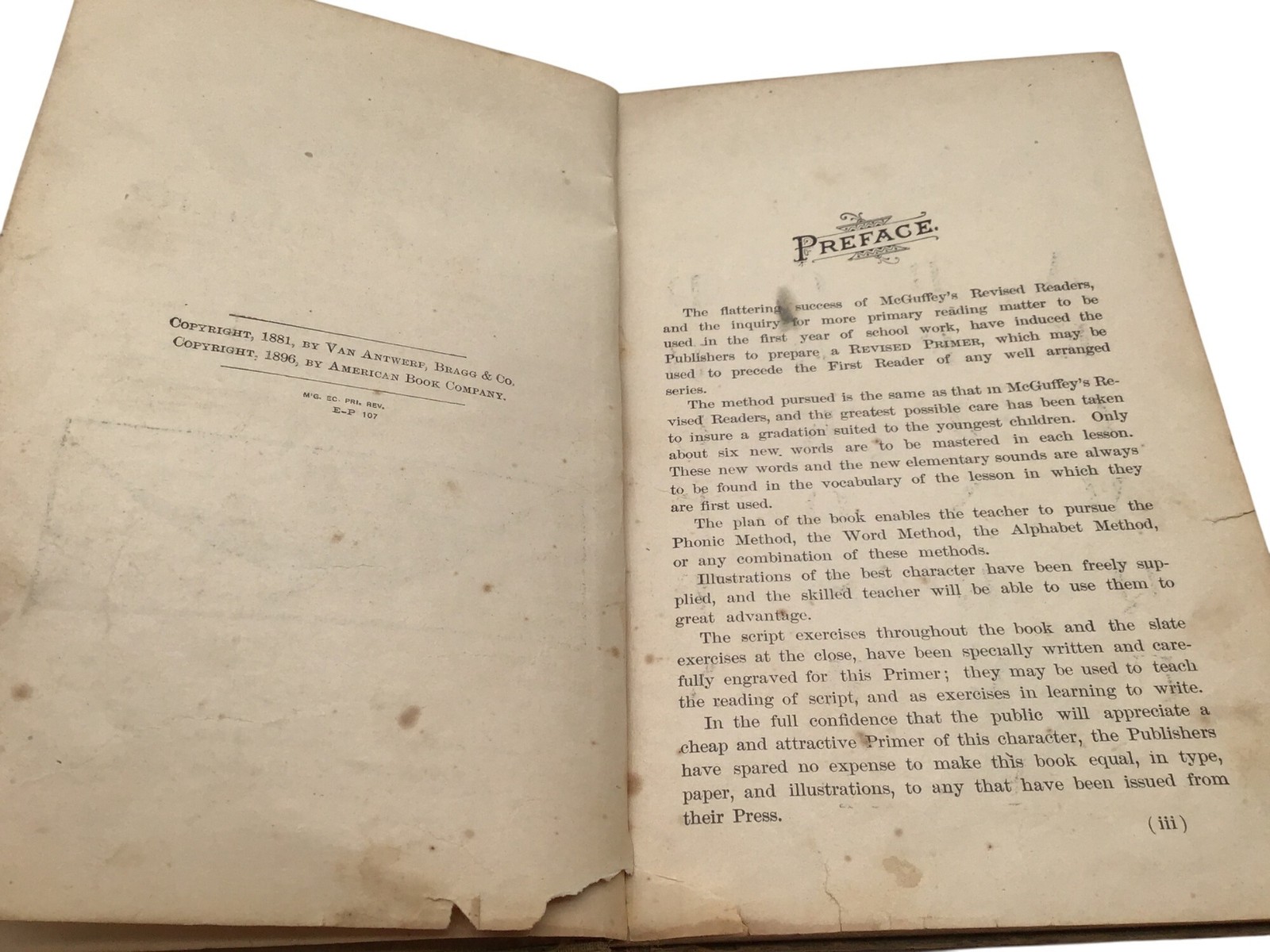 Antique McGuffeys Eclectic Primer Book Revised 1881 American Book Co. Hardcover