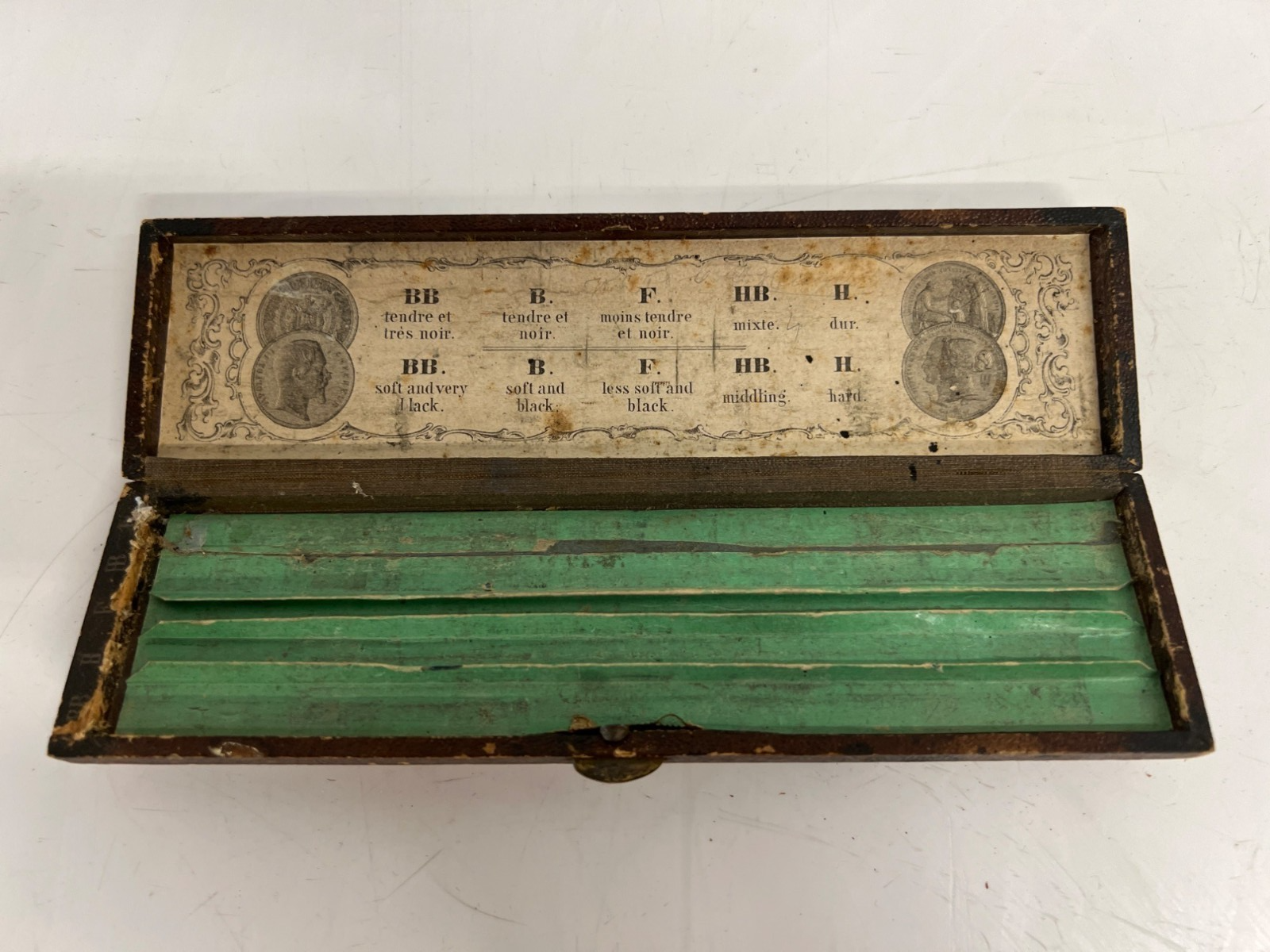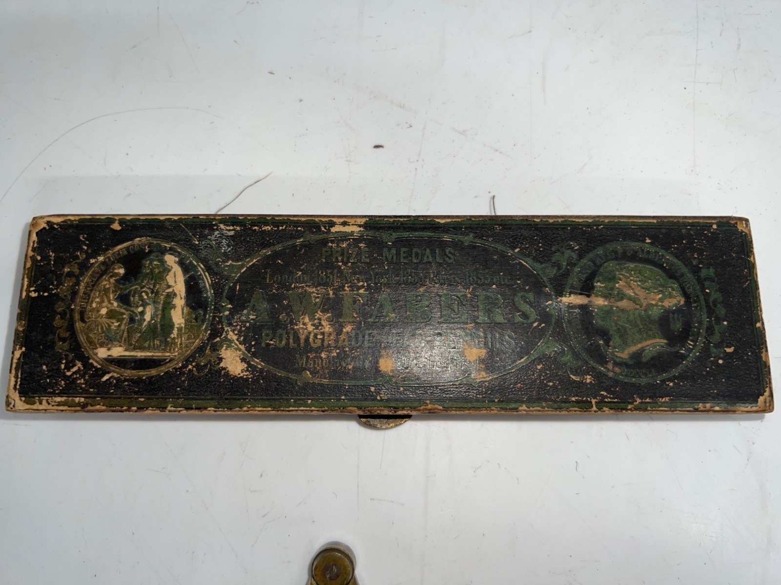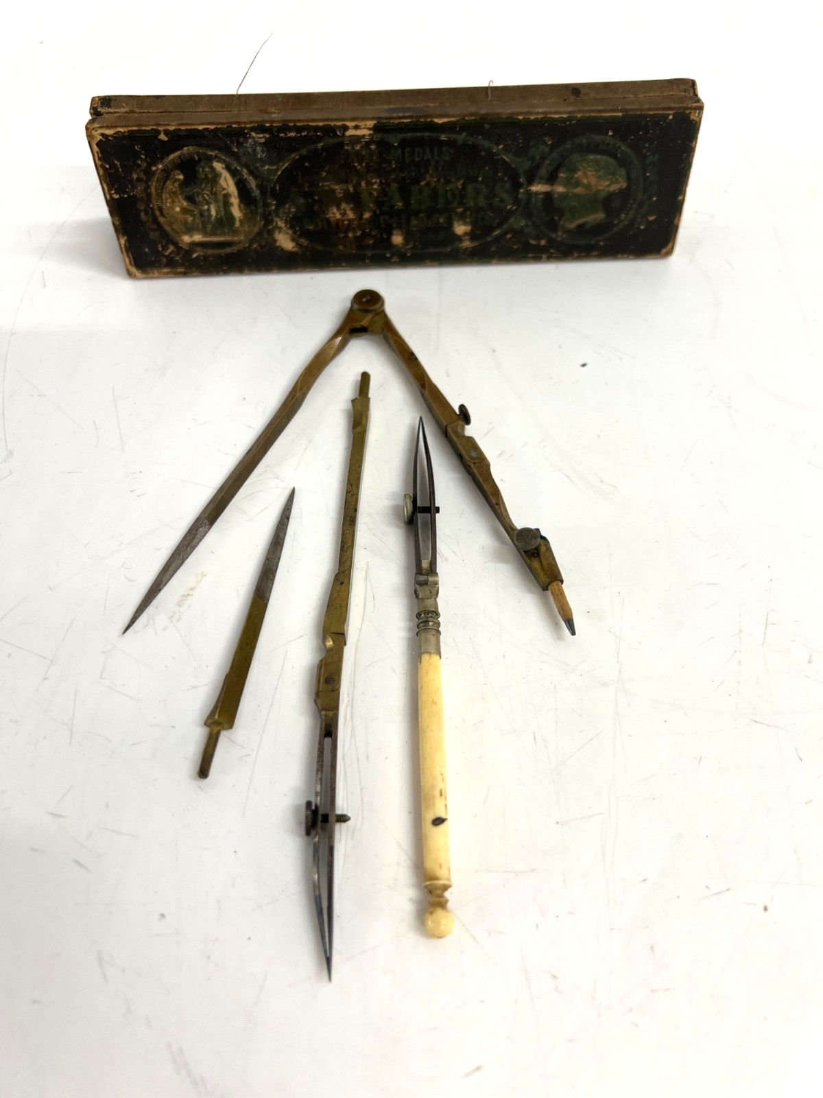 Antique Pencil Compass Chart Dividers & Ruling Pen w/ 2 Accessories in Old Case