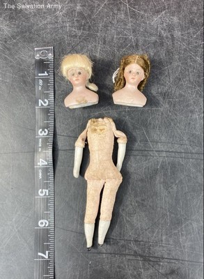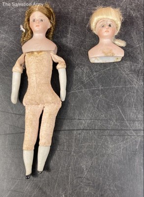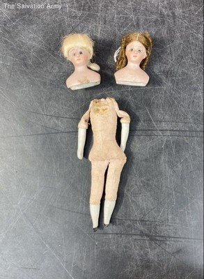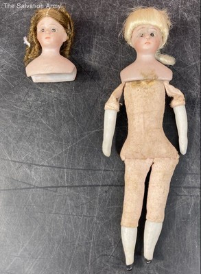 Antique Simon & Halbig Bisque Blonde Brunette Little Women 1 Body 2 Heads 5 3/4"