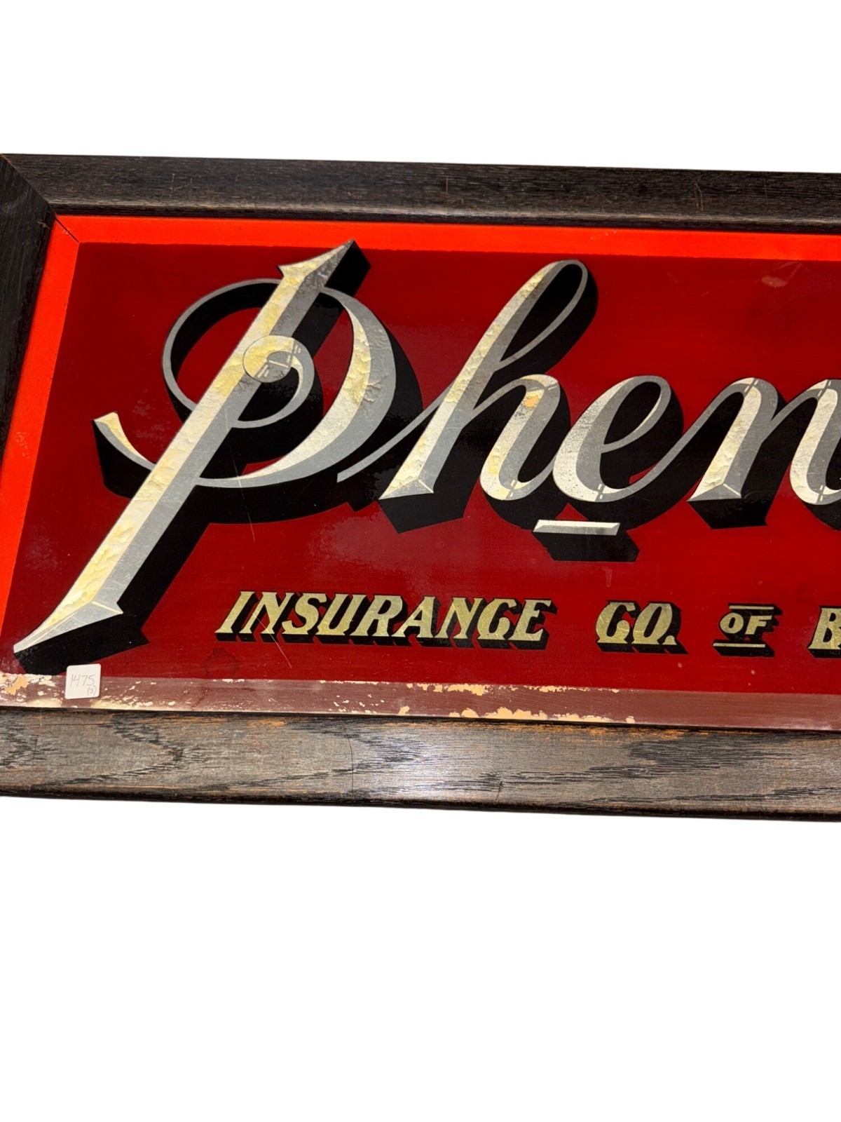 Antique Vintage Phenix Insurance Co. Of Brooklyn Advertising Sign Wooden Frame