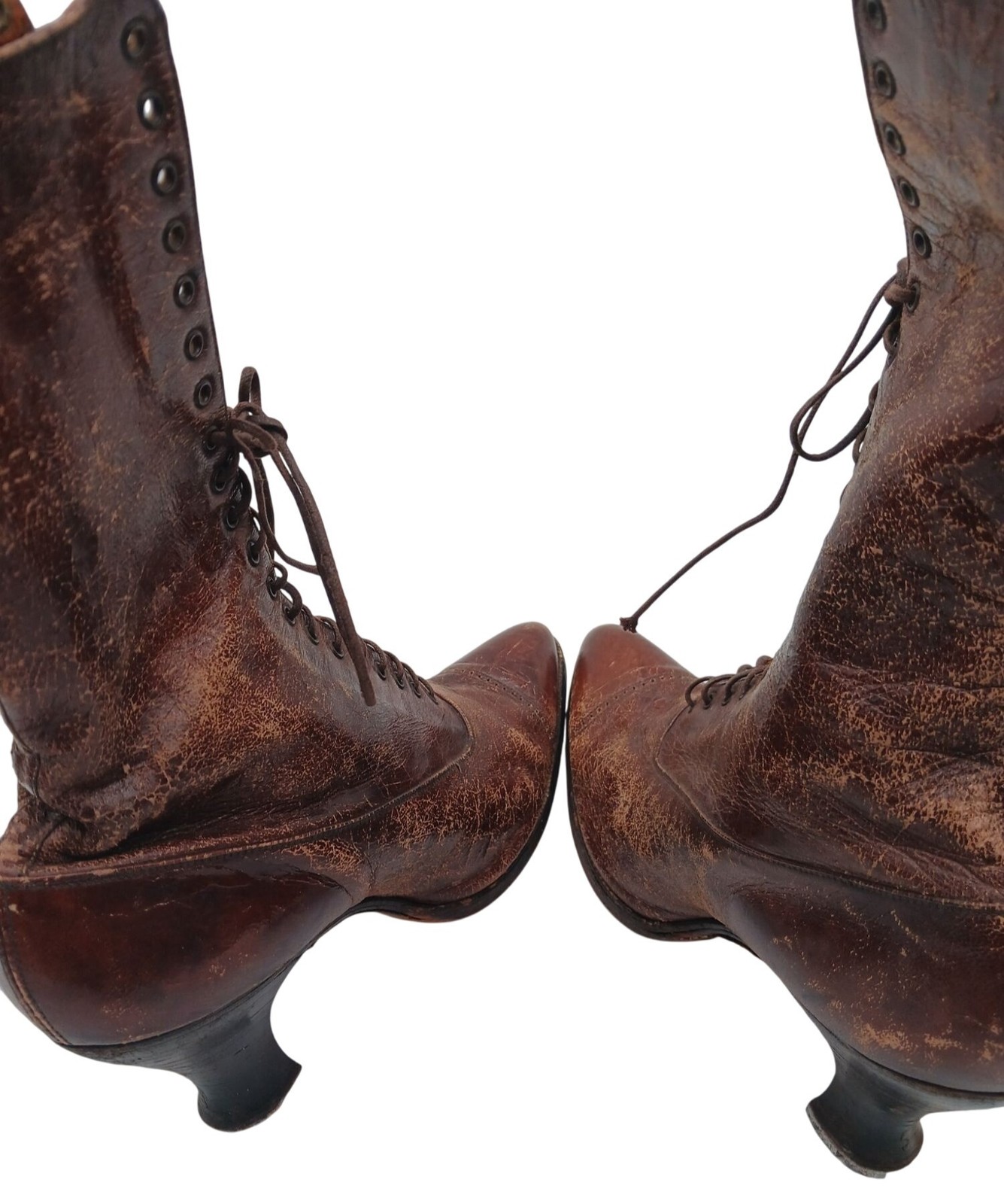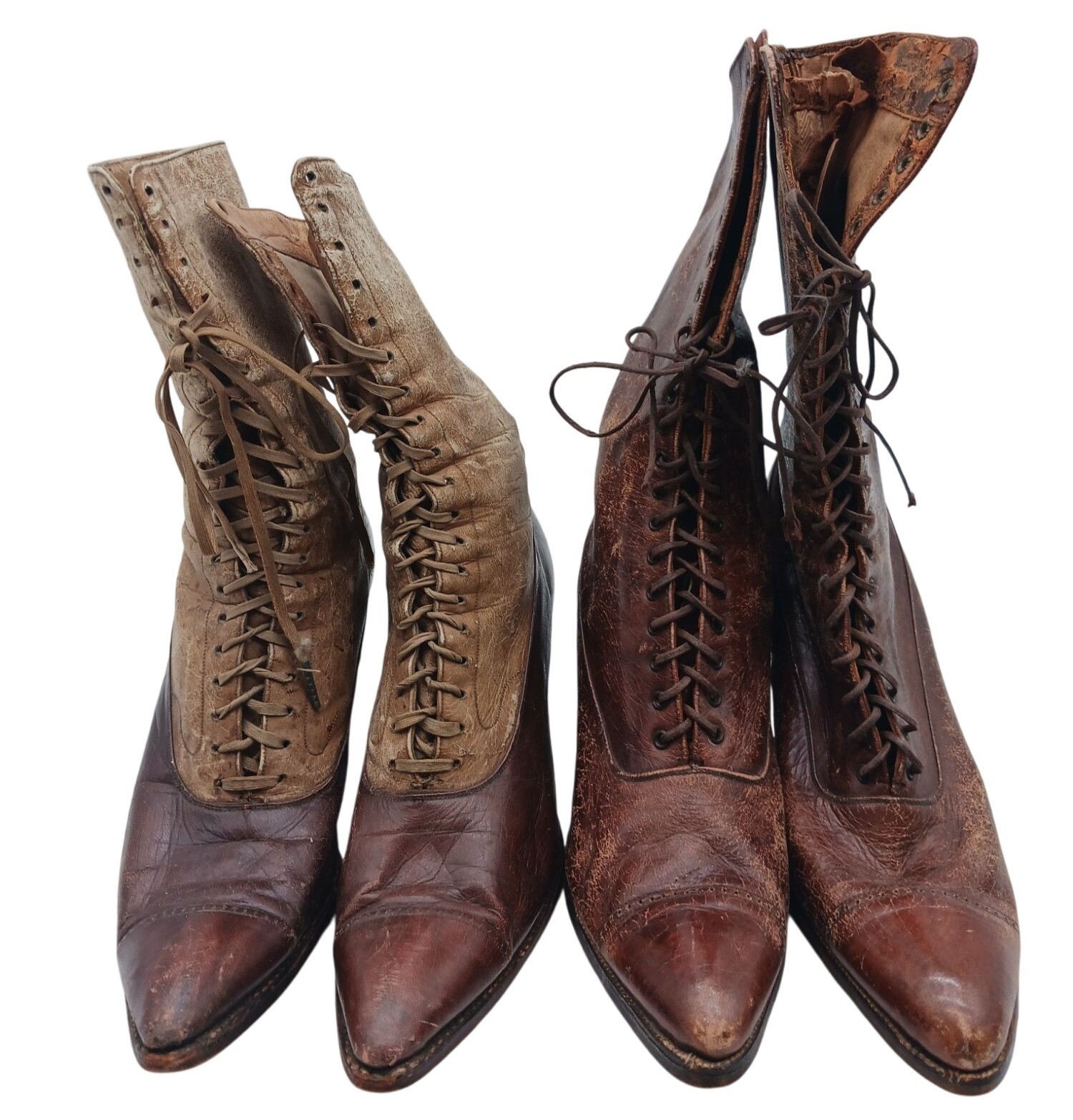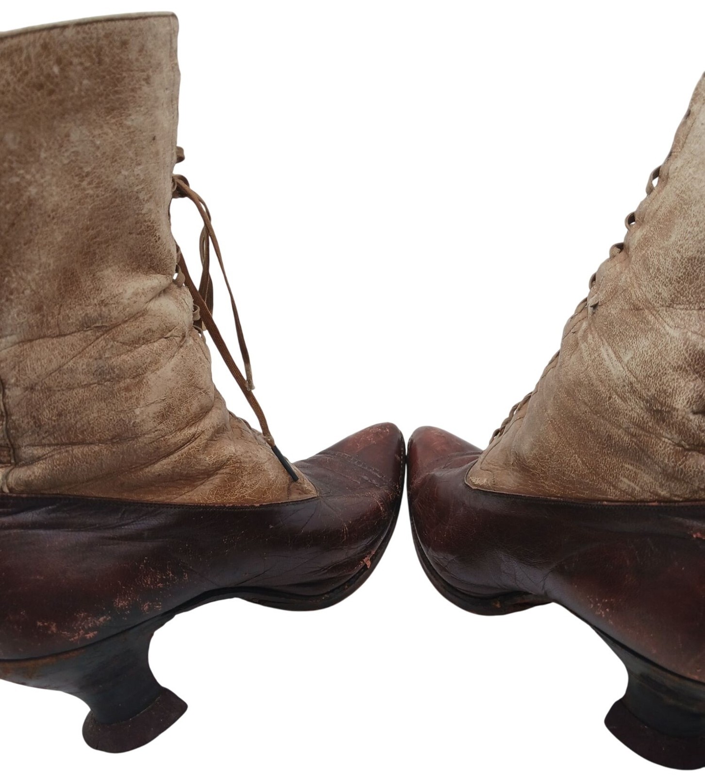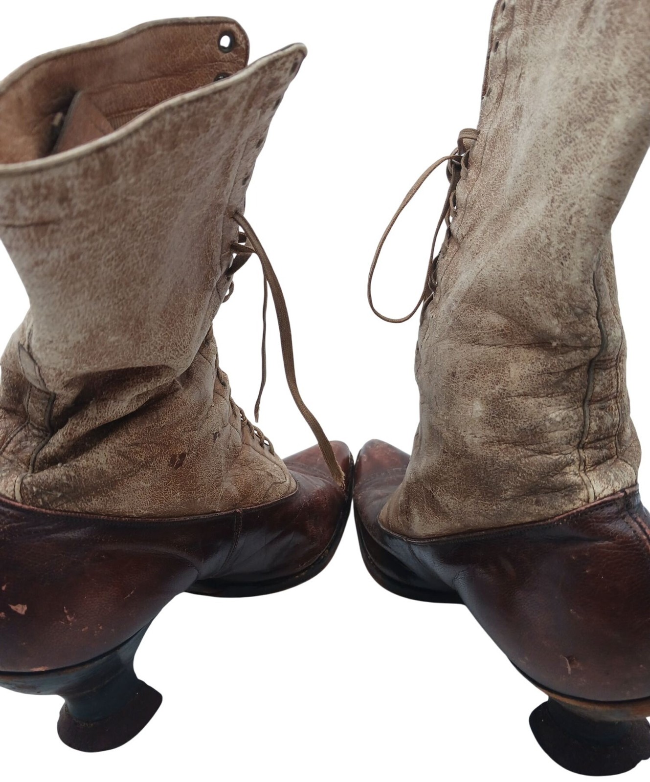 Antique Womens Victorian Leather & Canvas Lace-Up Boots