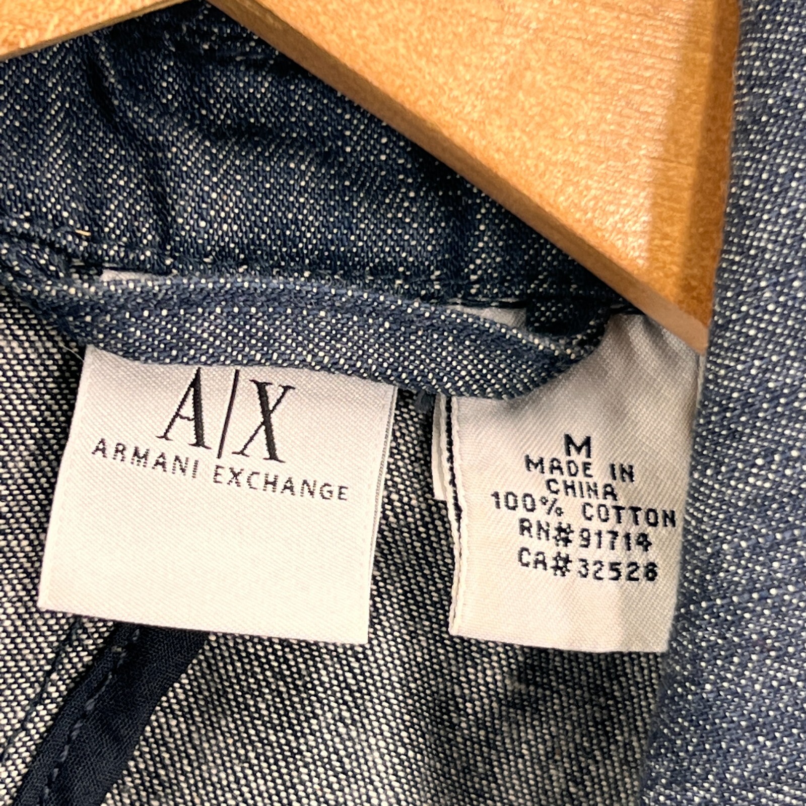 Armani Exchange Women's Designer Blue Asymmetrical Denim Blazer Jacket Size M
