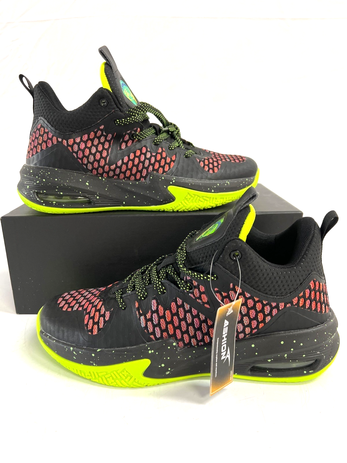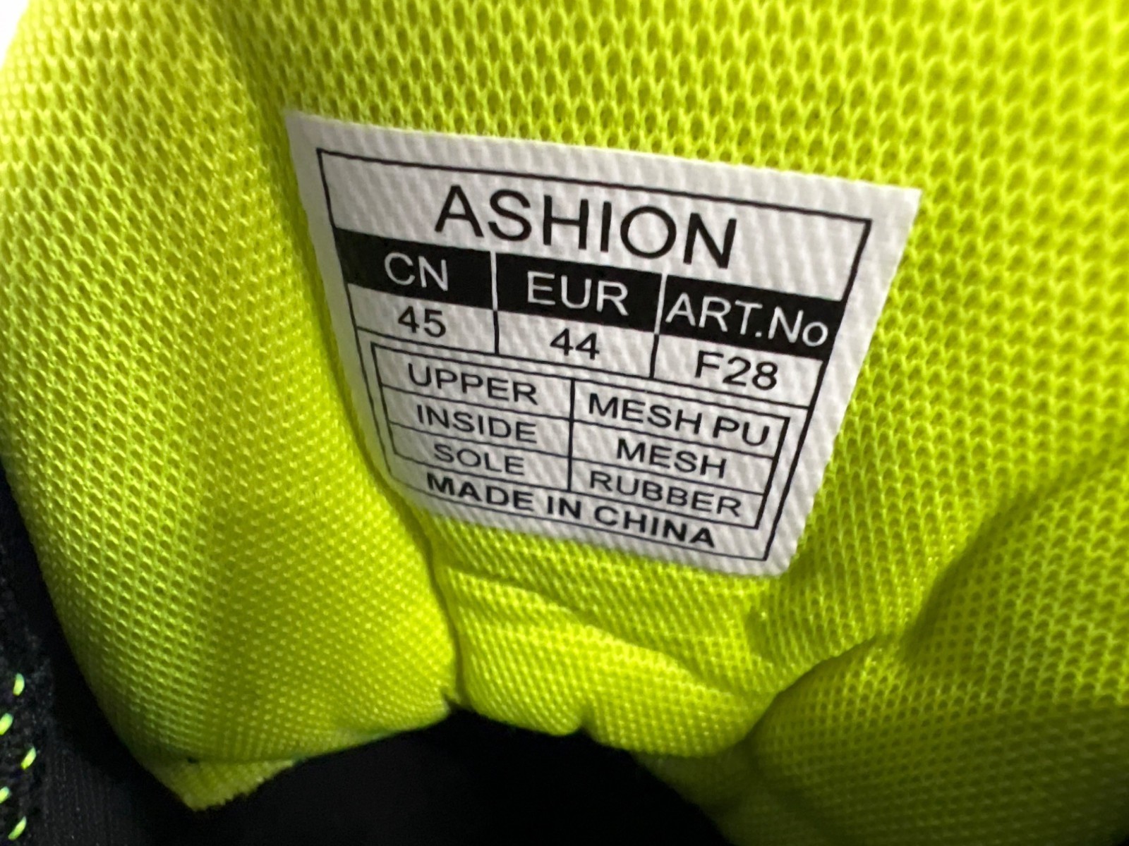 ASHION F28 Black & Neon Green Mesh Sneakers Men Size 44 (New w/ Tag)