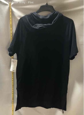 Athleta Womens Black Cabana Short Sleeve Drawstring Tunic Hoodie Size Medium