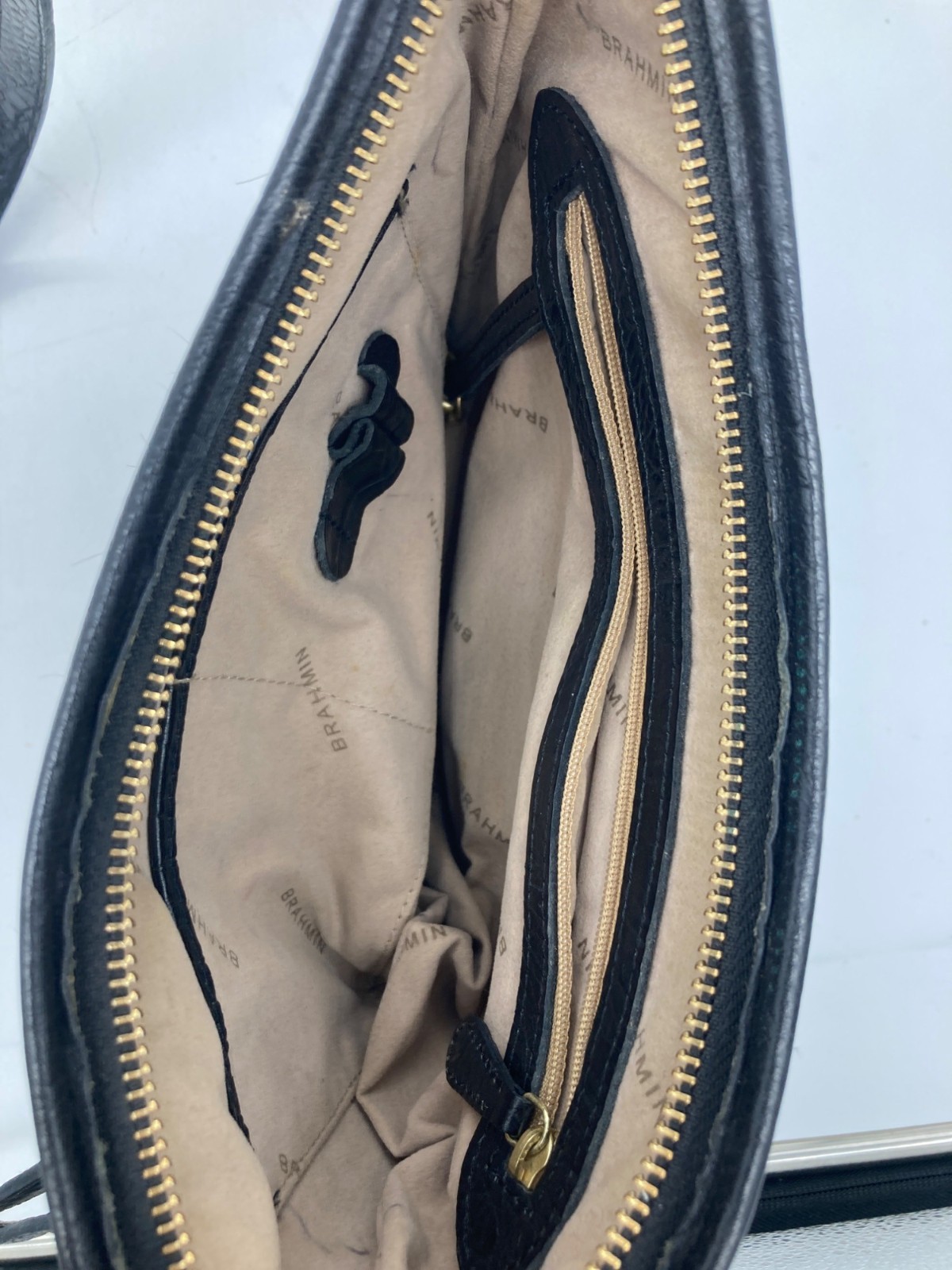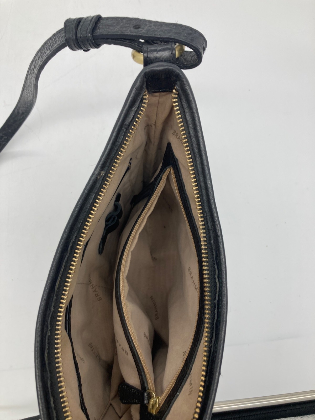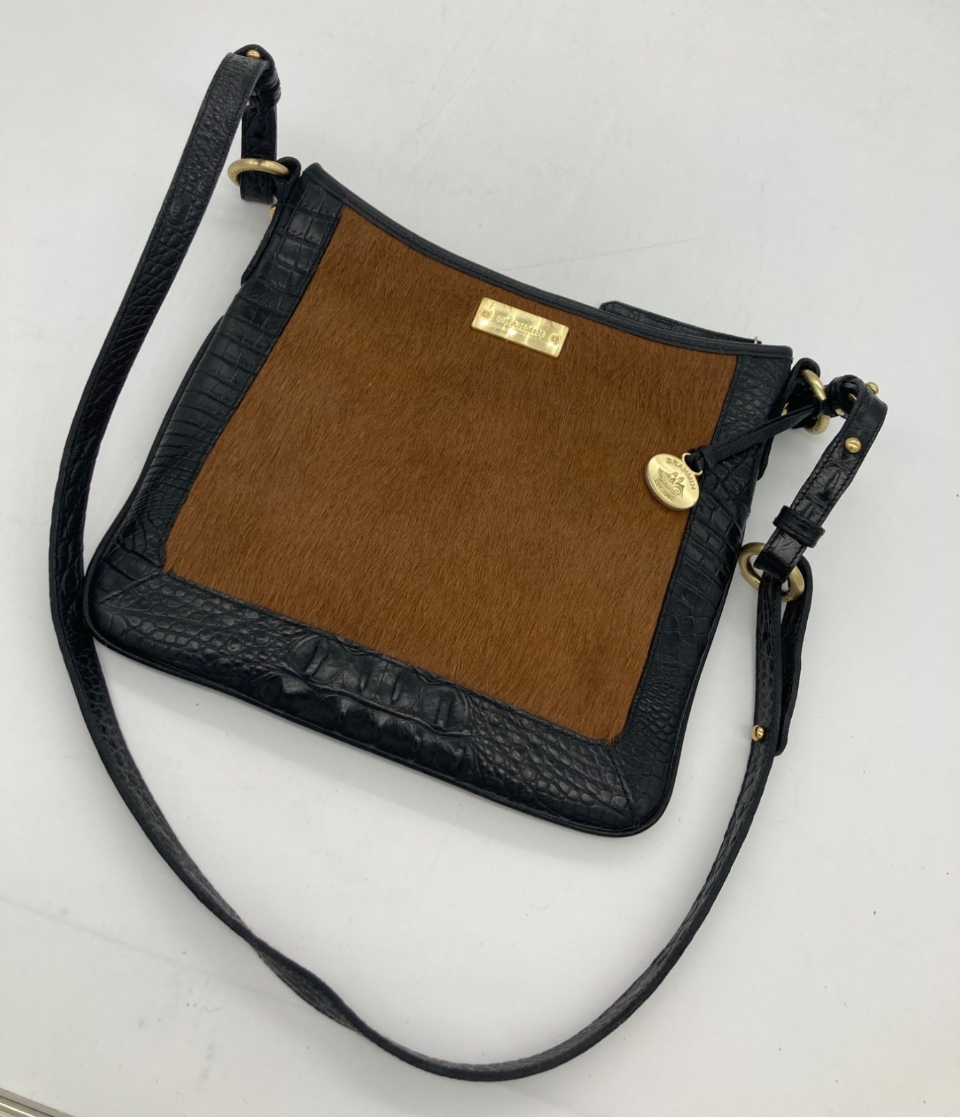 Authenticated Brahmin Brown & Black Haircalf Leather Crossbody Bag With Strap