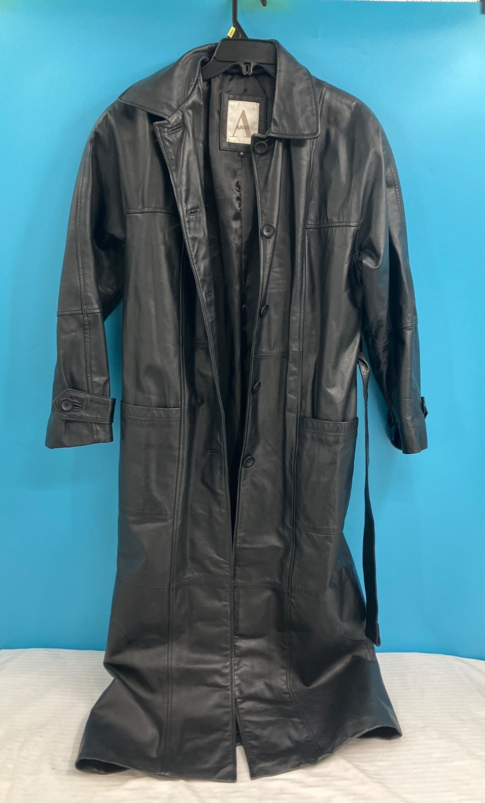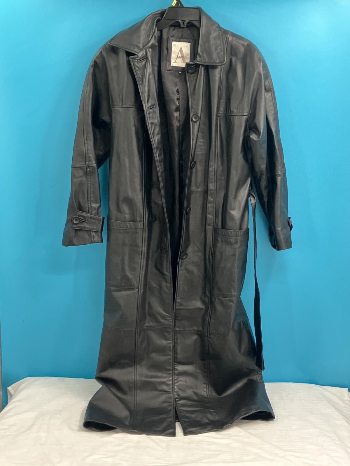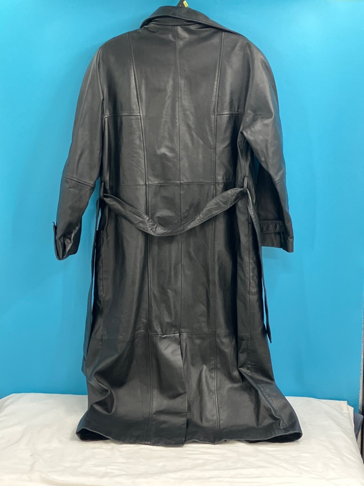 Avanti Womens Black Genuine Leather Trench Coat (size M) measures 19" pit to pit