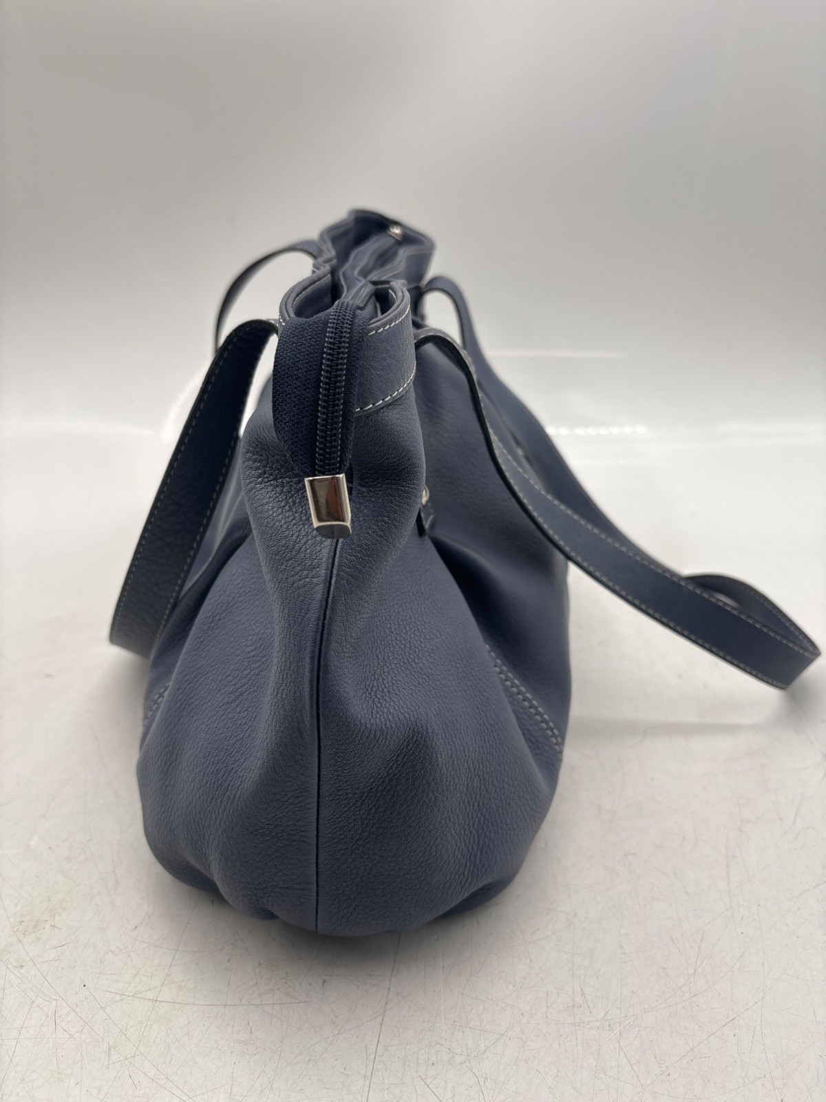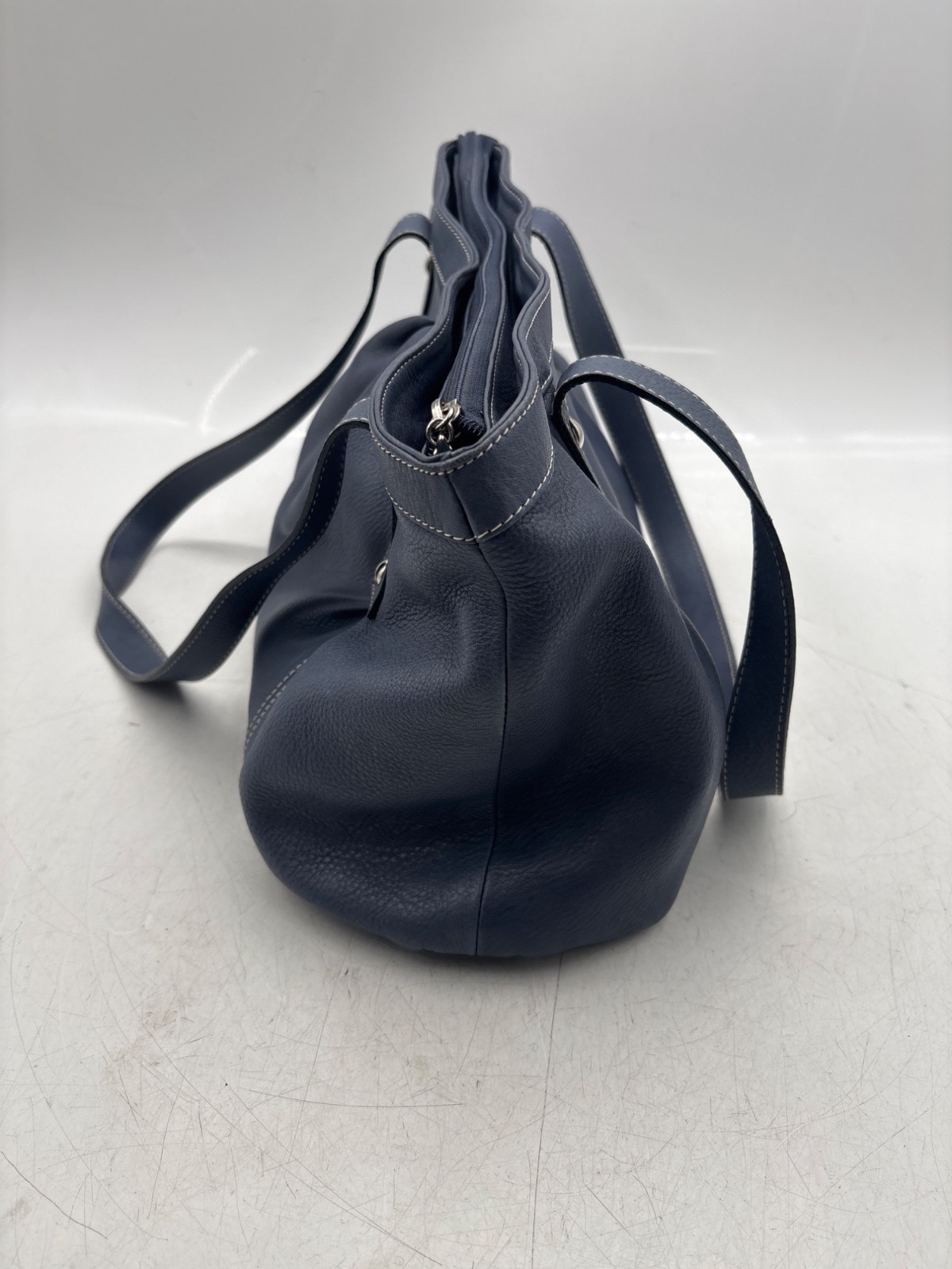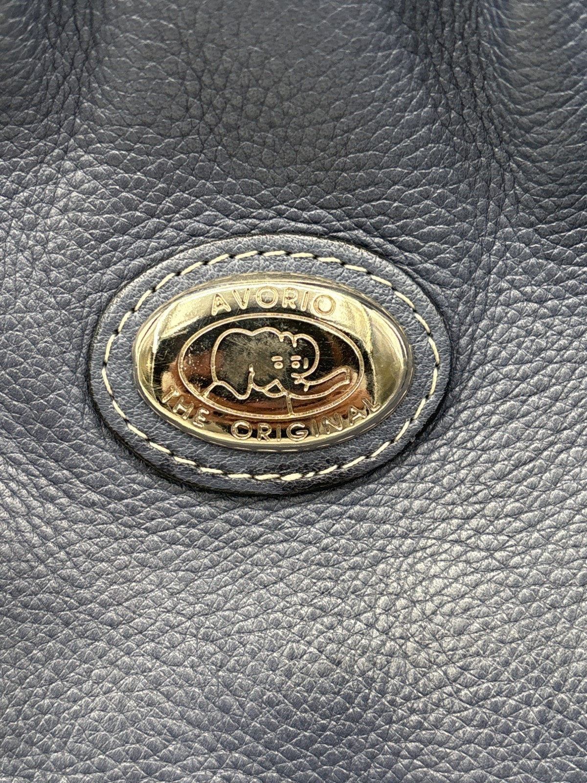 Avorio Deep Blue Leather Italian Shoulder Zip Up Bag