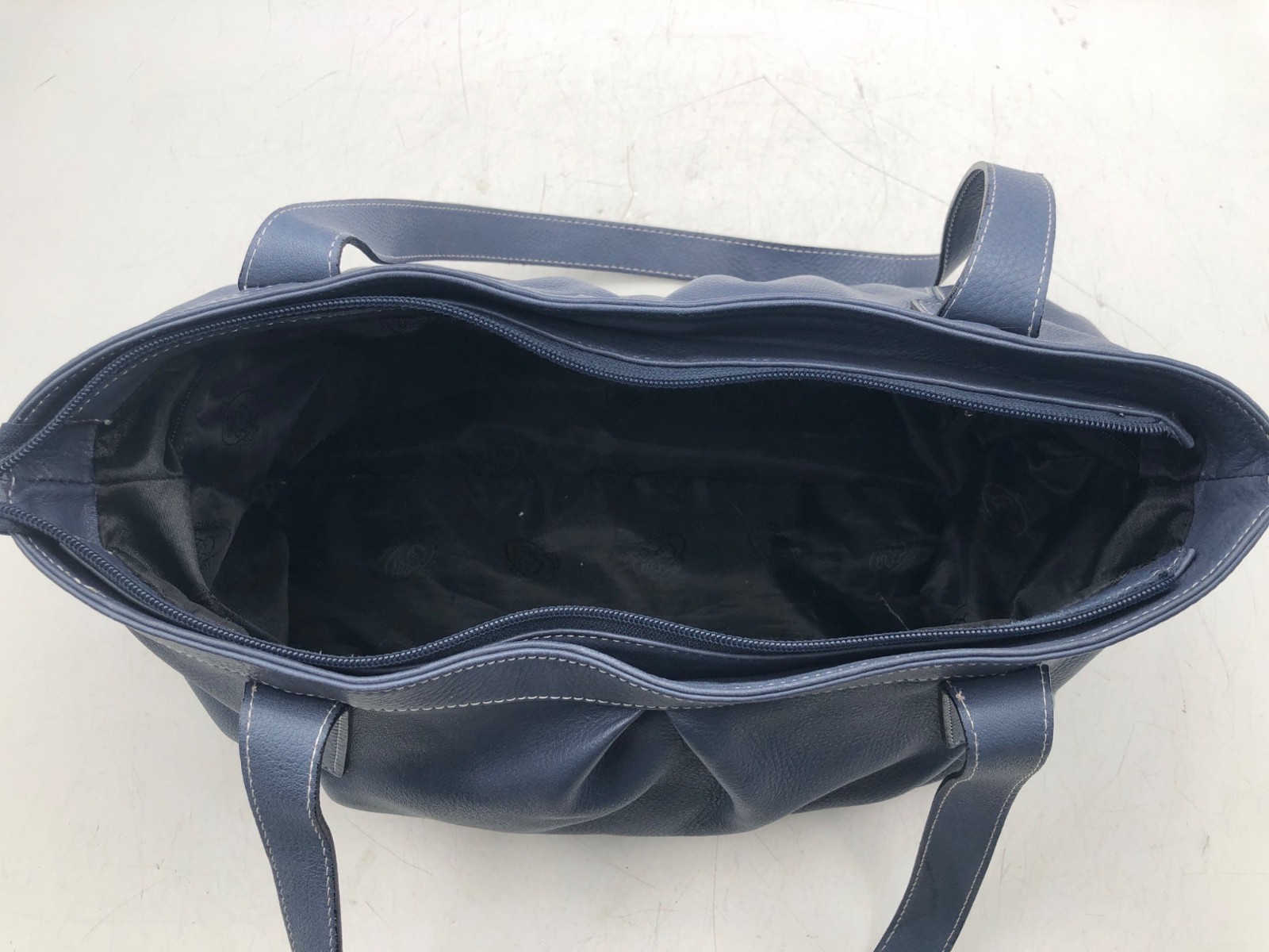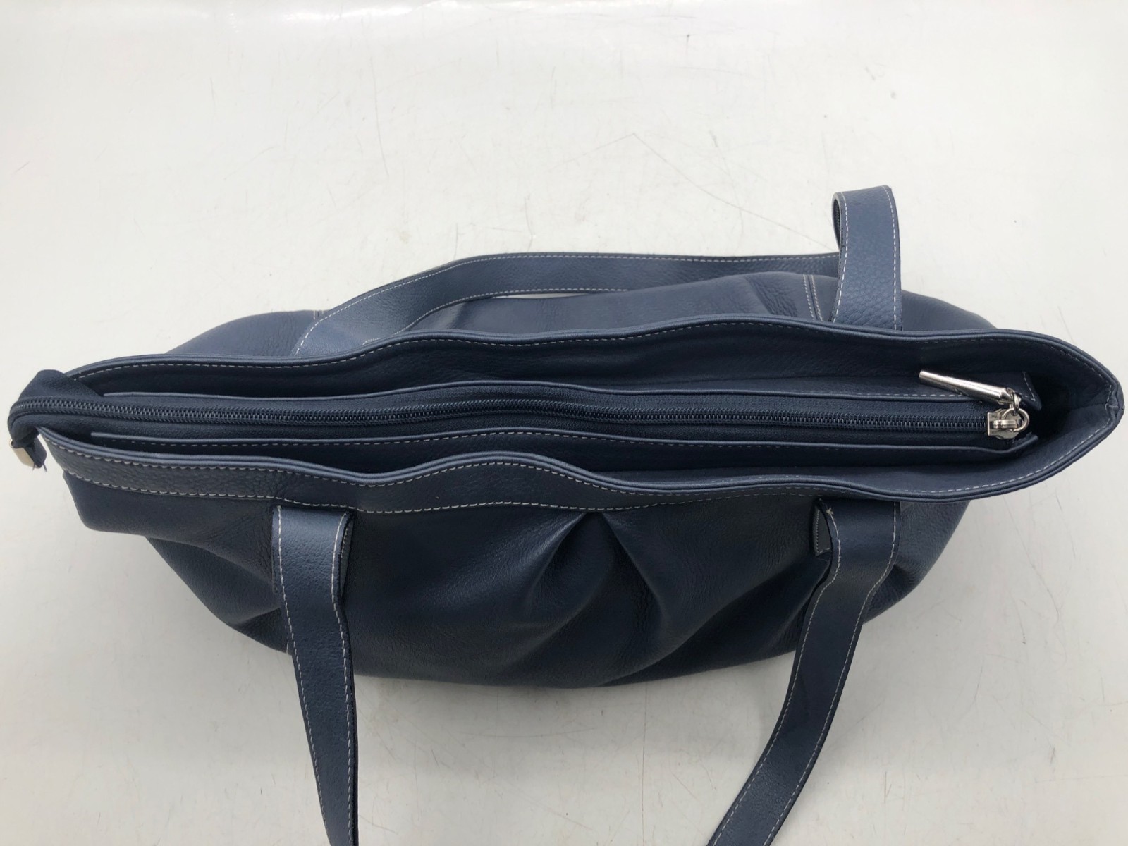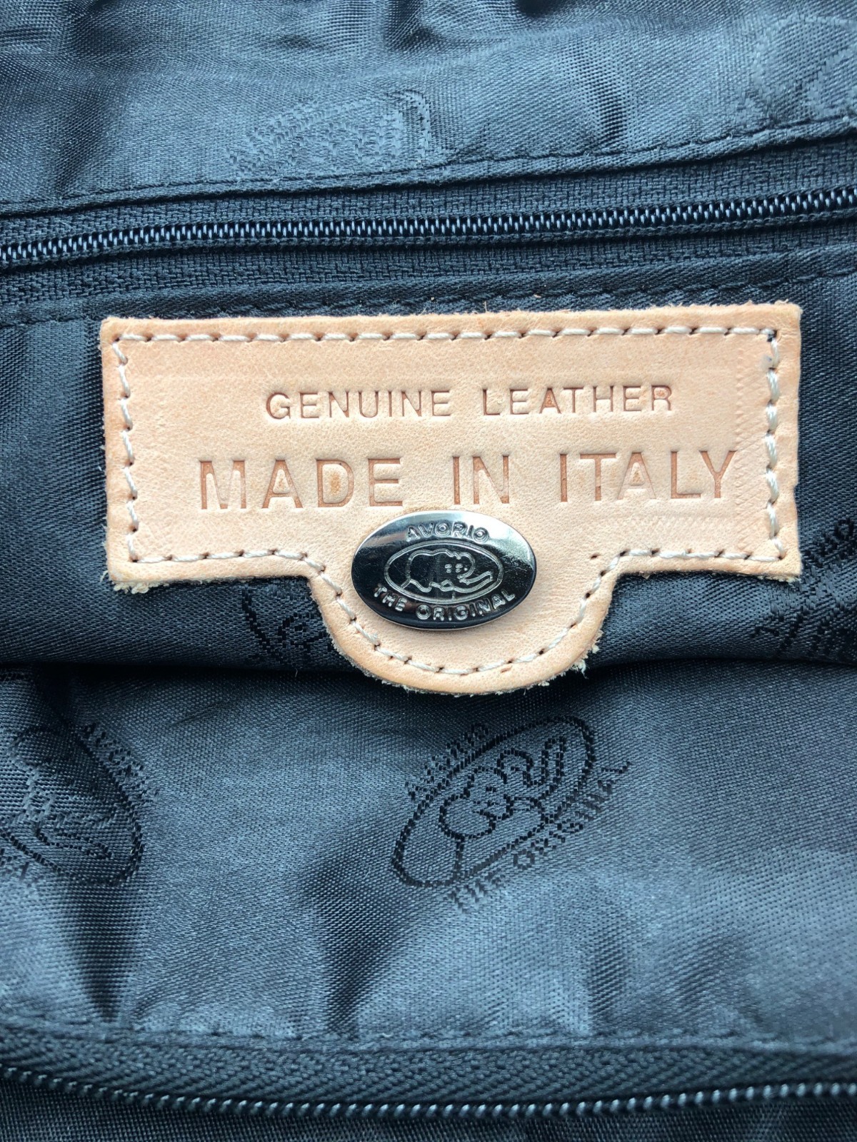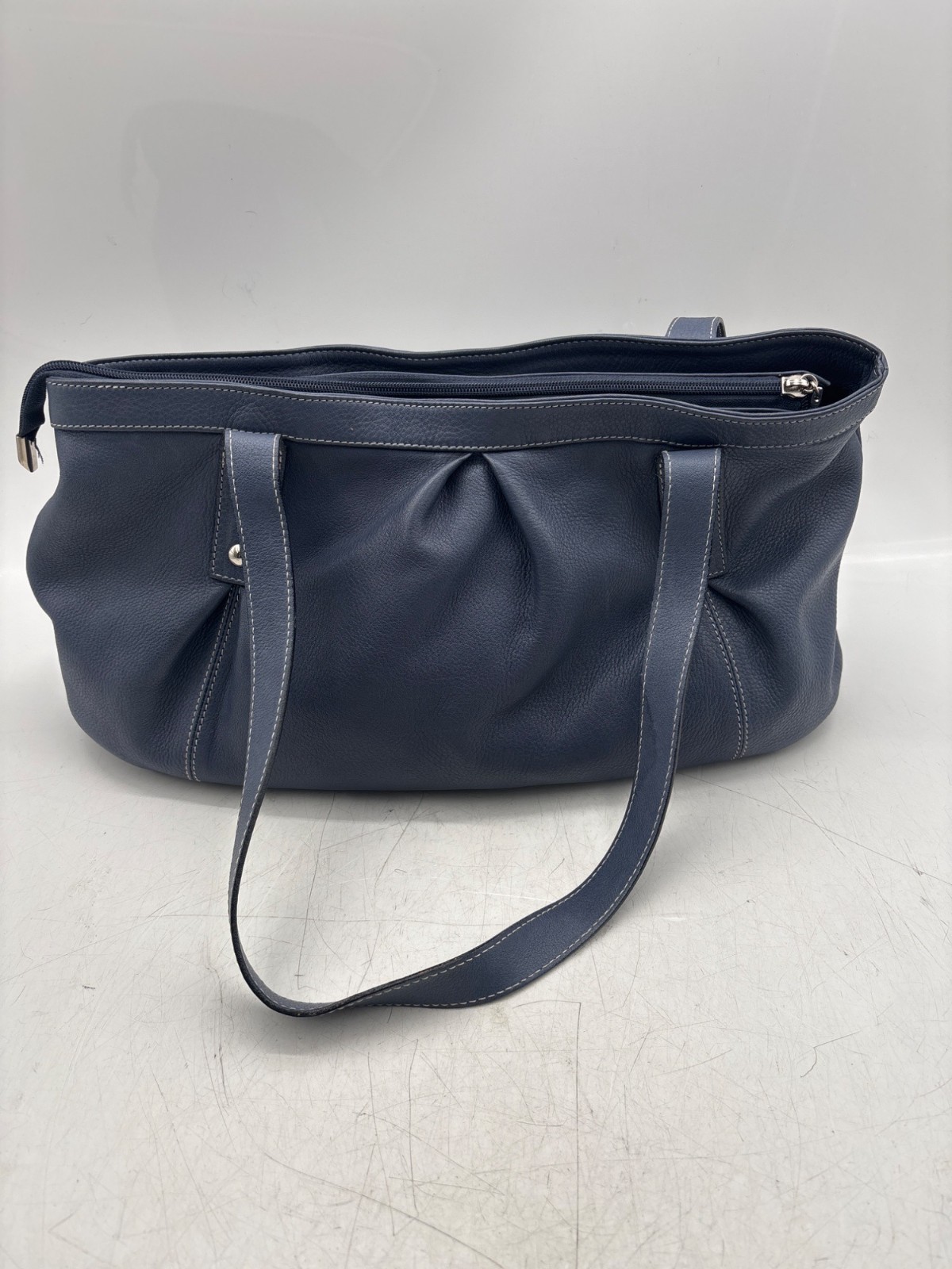 Avorio Deep Blue Leather Italian Shoulder Zip Up Bag