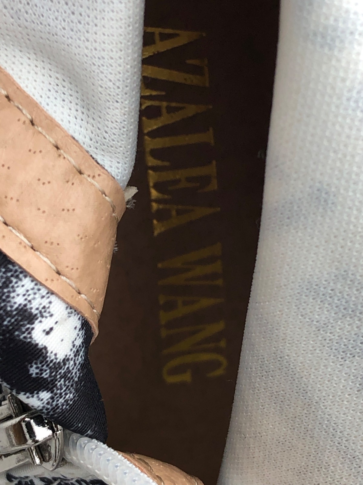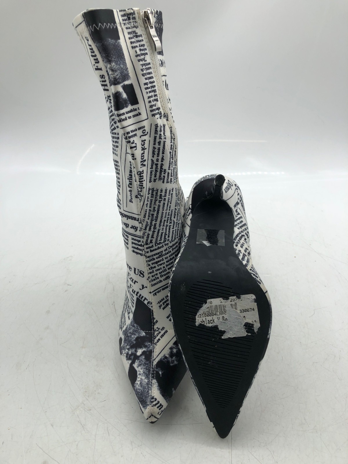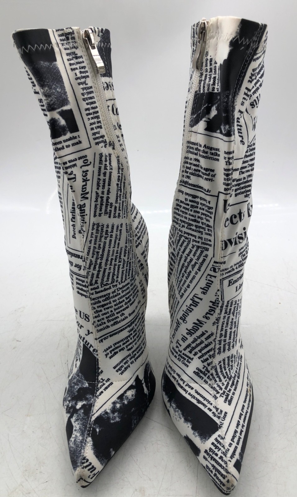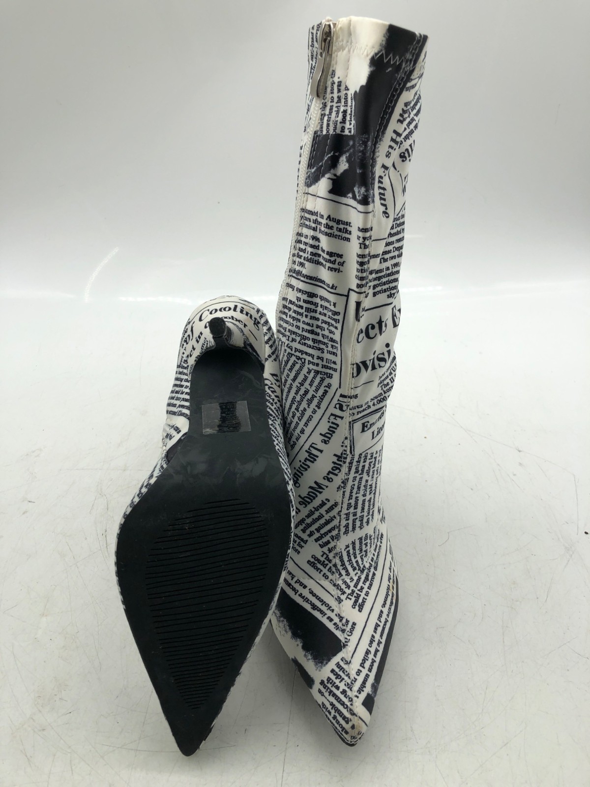 Azalea Wang Womens Black/White Newspaper Graphic Nylon Mid-Calf Heels- Size 8