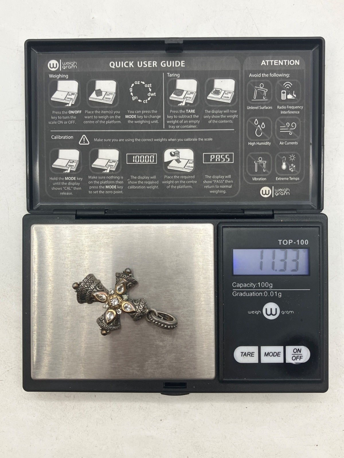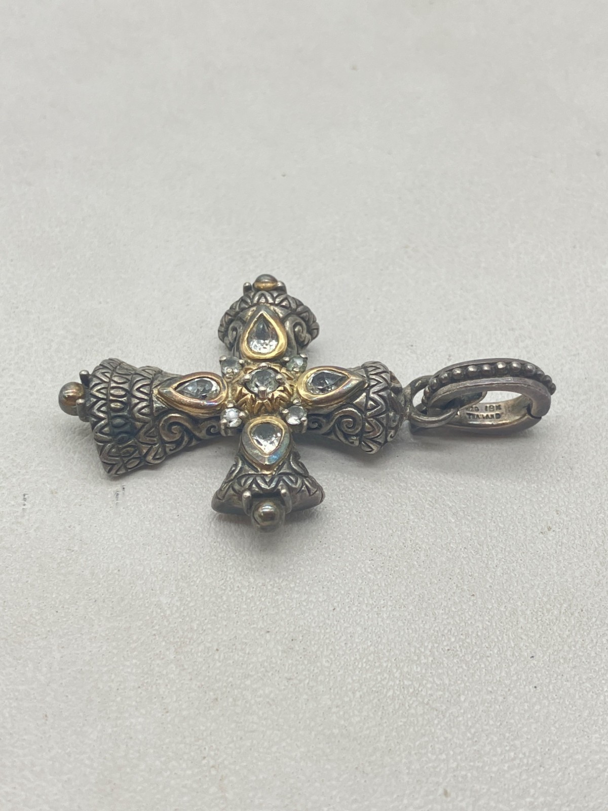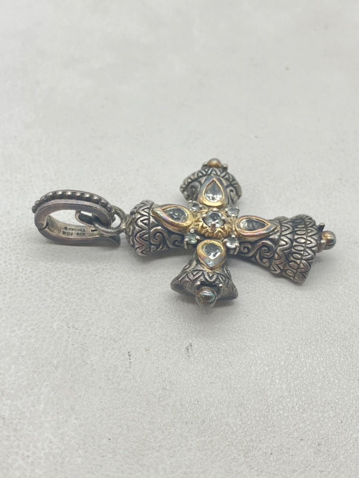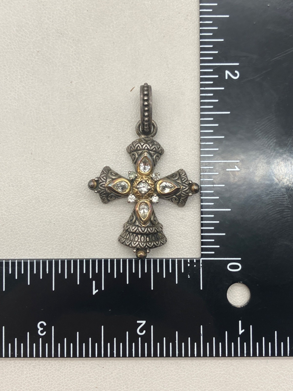 Babara Bixby 925 Silver & 18k White Sapphire Cross Pendant - 11.33g
