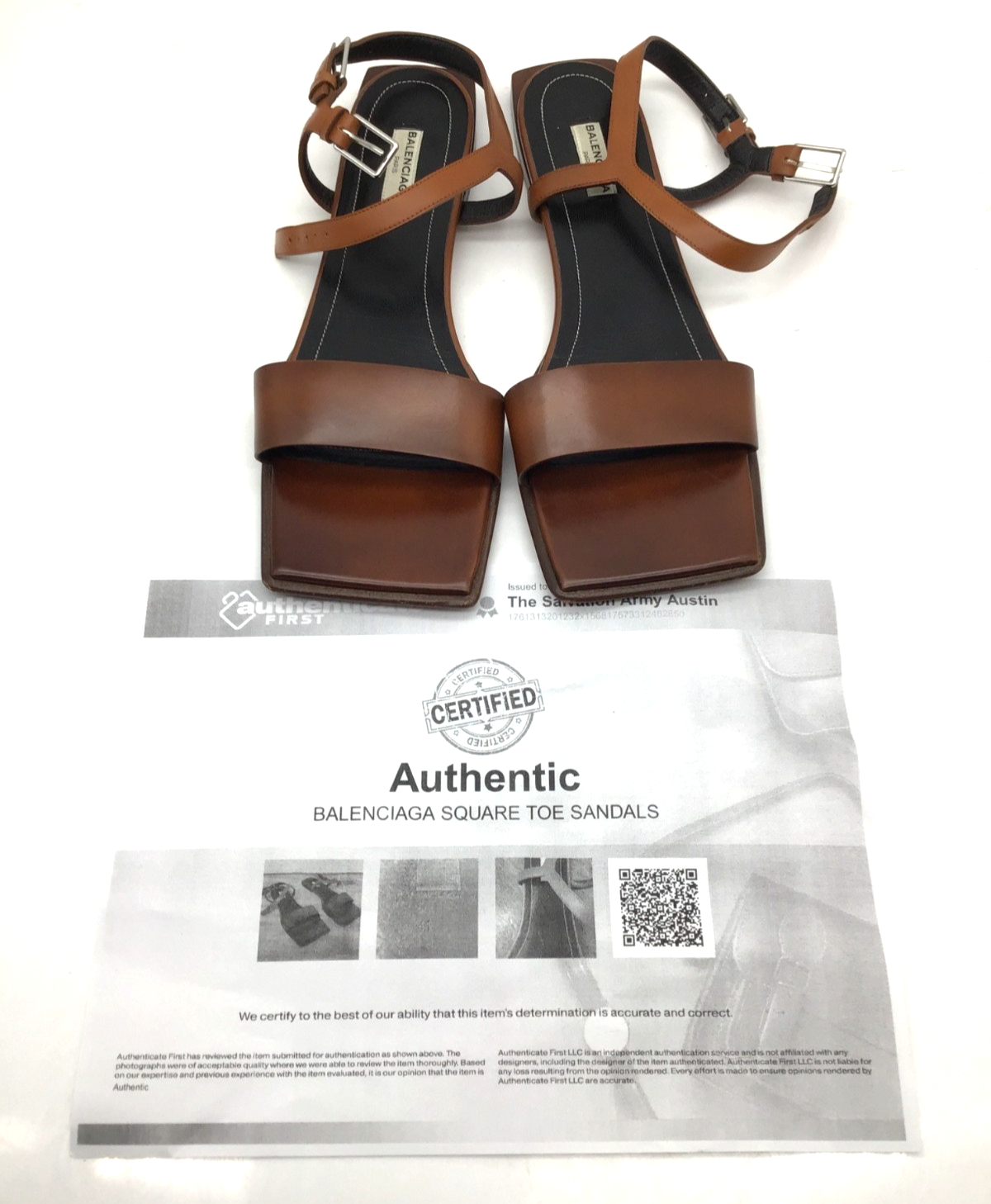 Balenciaga Brown Leather Square Toe Womens Sandals - Size 41