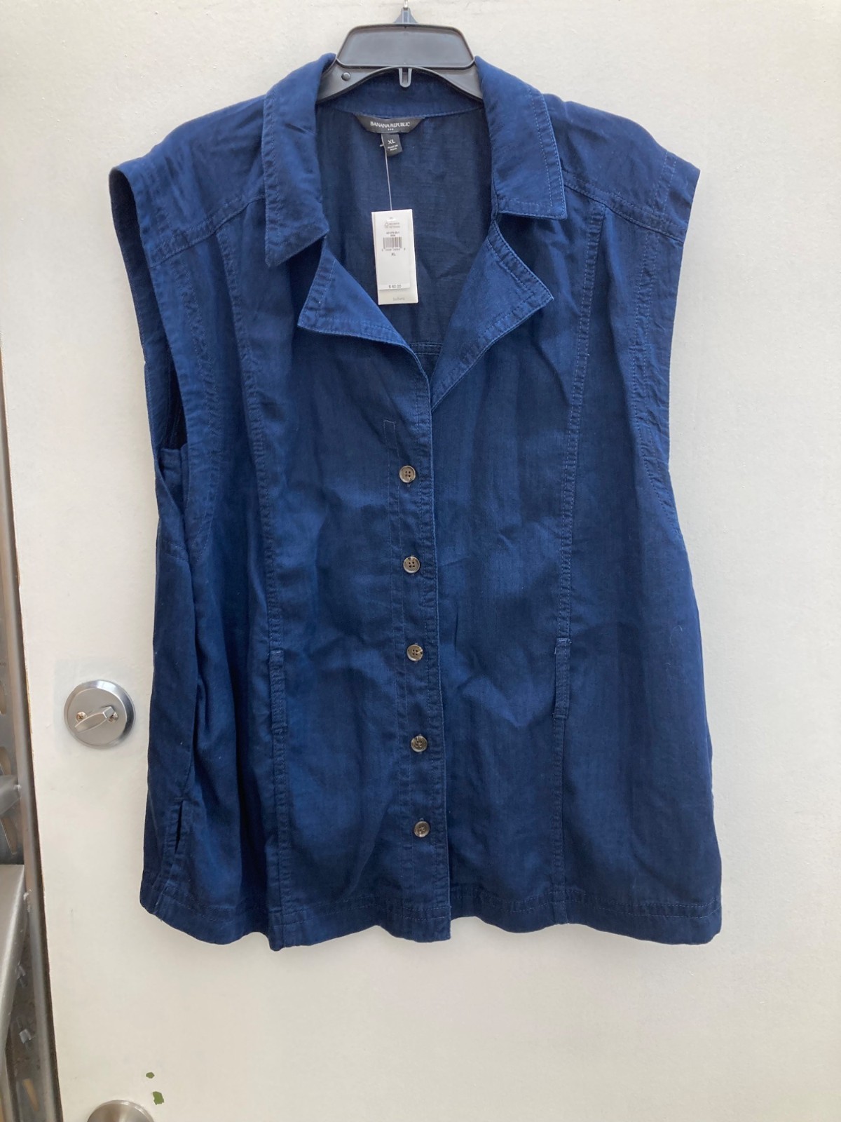 Banana Republic Women's Sleeveless Button-Down Blue Shirt XL