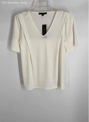 Banana Republic Womens White Short Sleeve V-Neck Blouse Top Size Small
