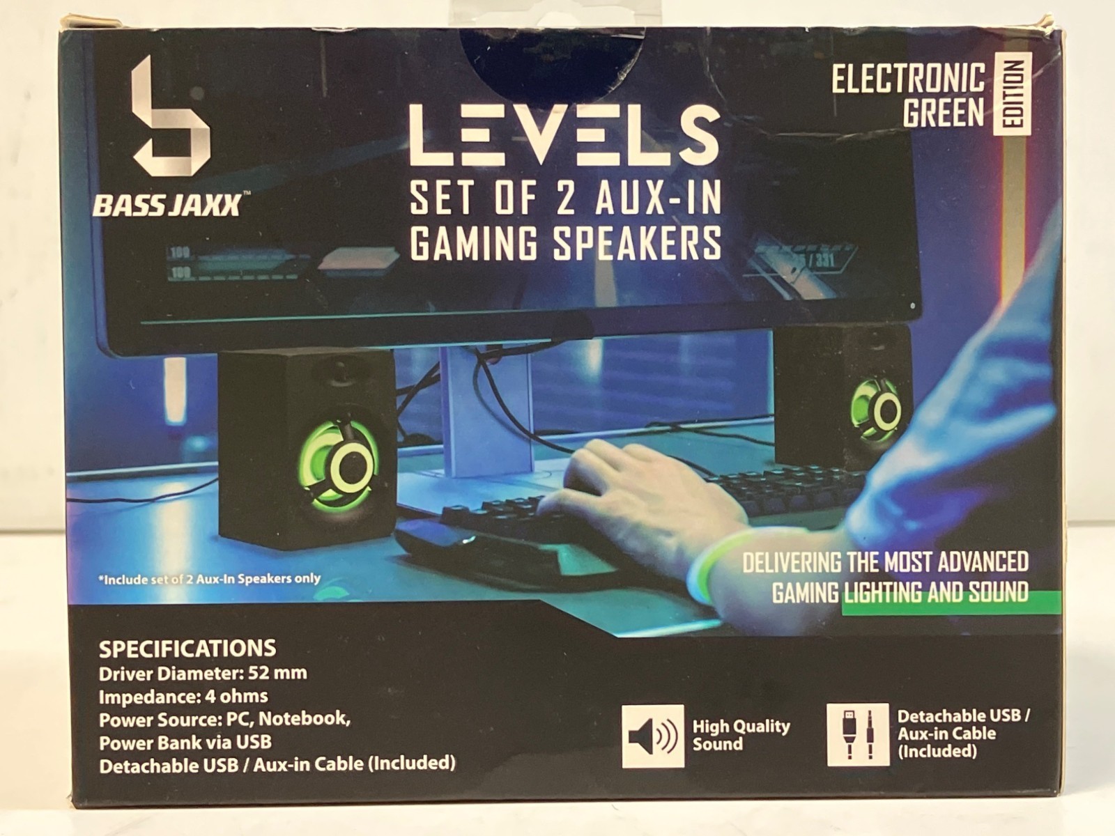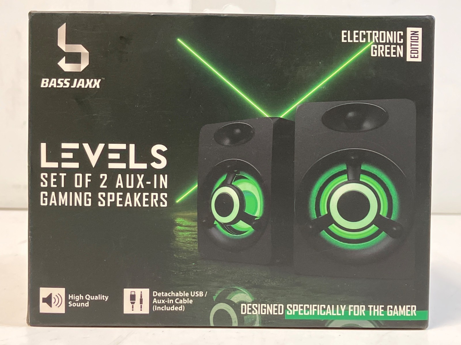 Bass Jaxx Levels 2 AUX-In Gaming Speakers - Green - NIB