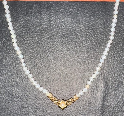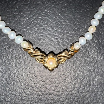BEAUTIFUL 10KT YELLOW GOLD Baroque Knotted PEARL 17.5" Necklace