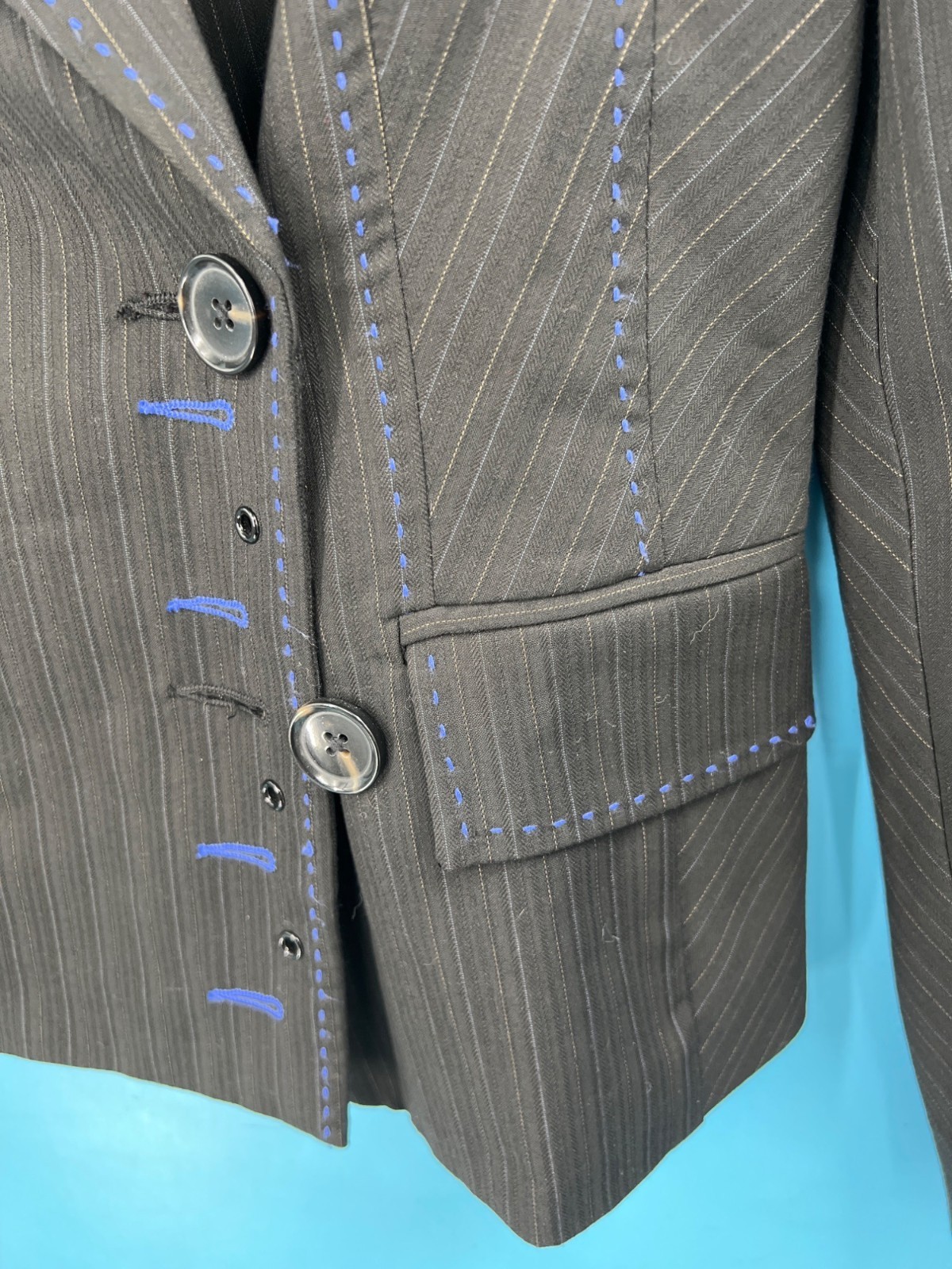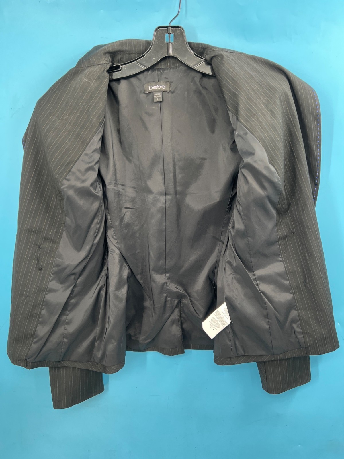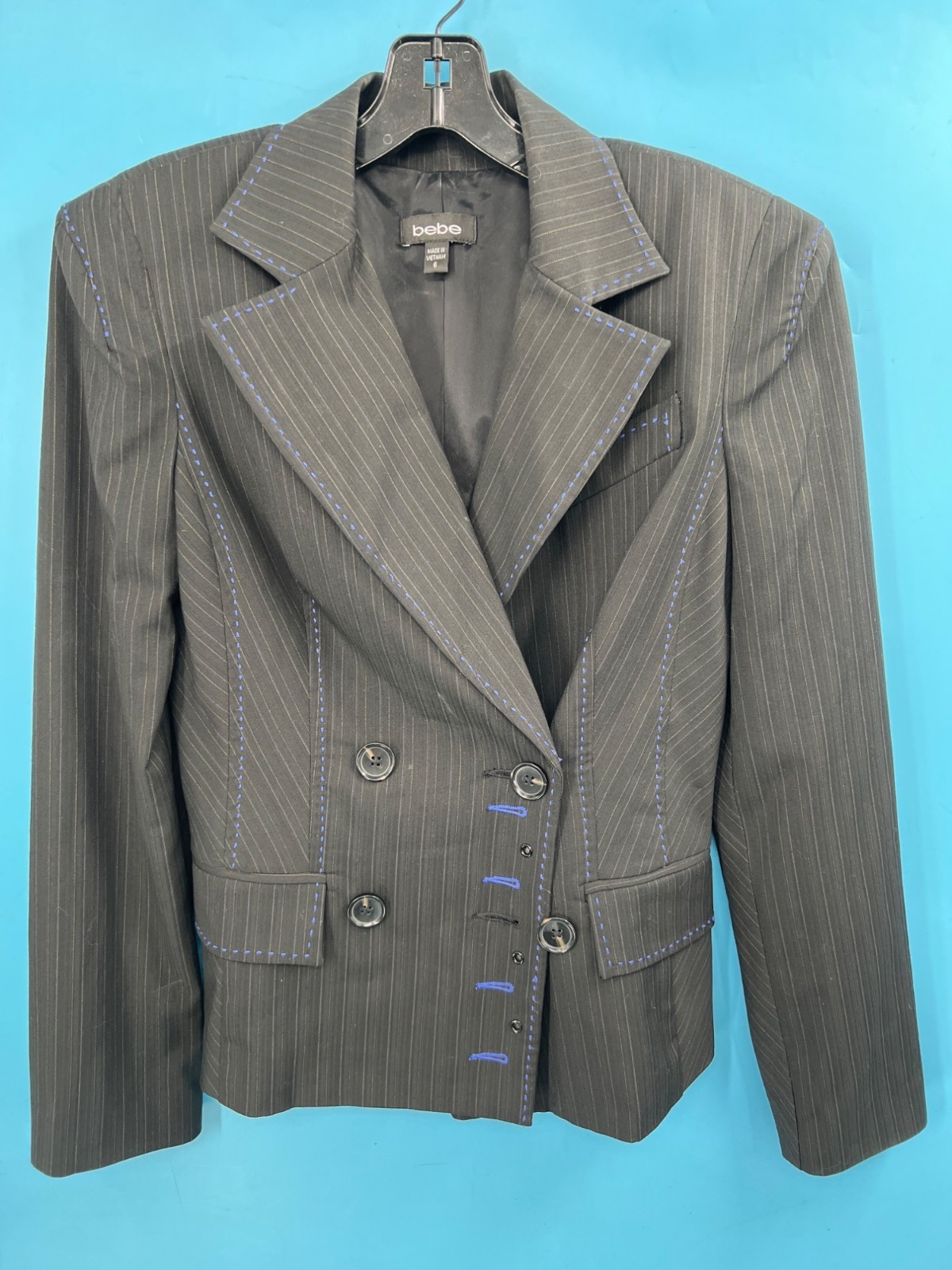 Bebe Womens Blue Large Stitch Black Blazer (size 6)