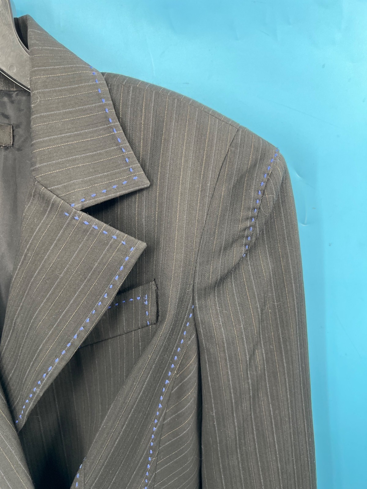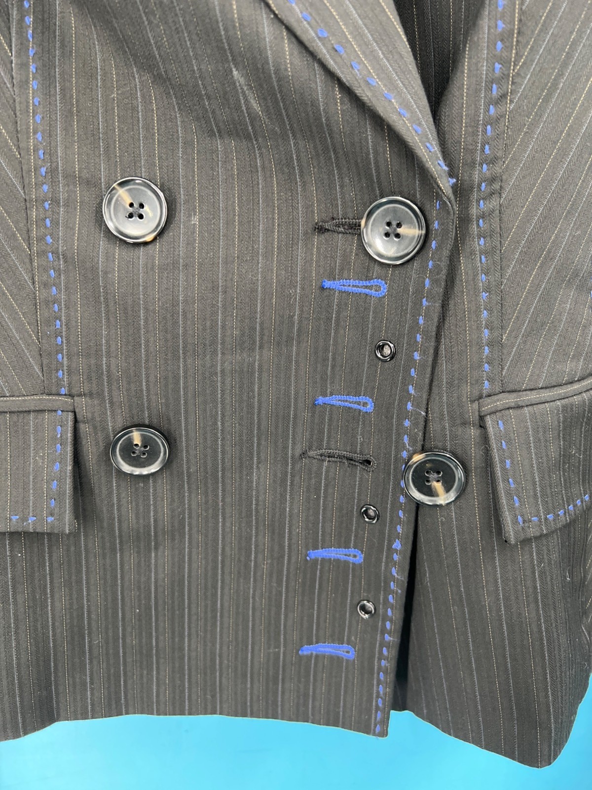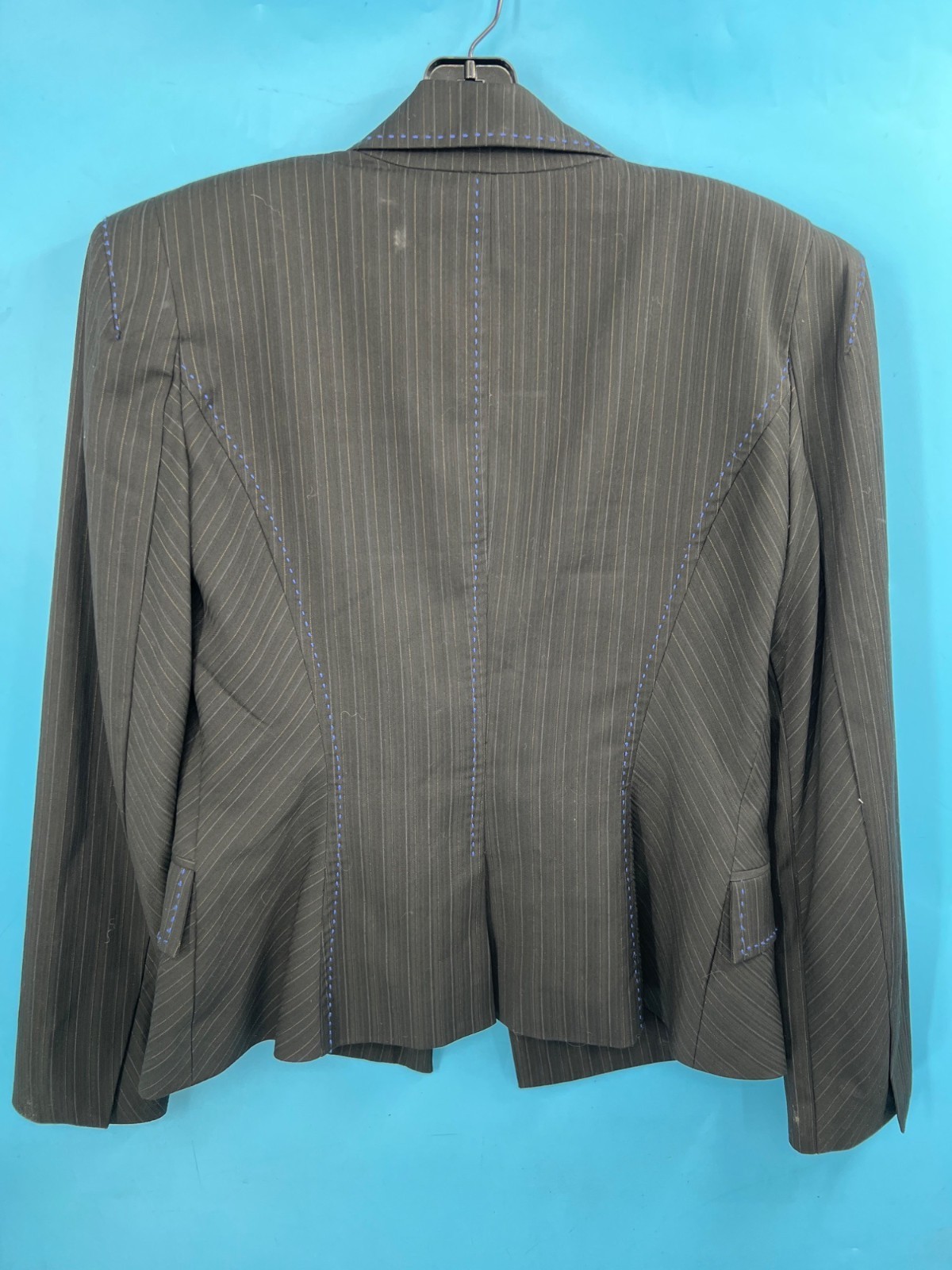 Bebe Womens Blue Large Stitch Black Blazer (size 6)