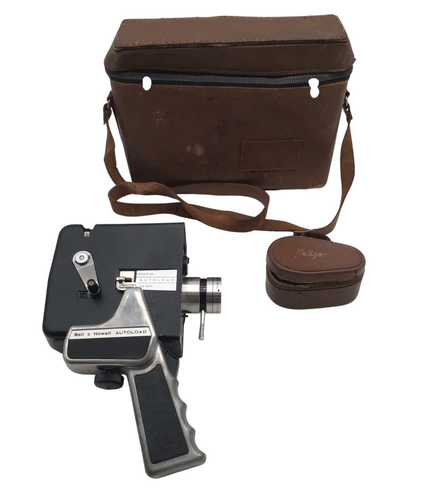 Bell & Howell Autoload 8mm Film Camera W/ Kaligar Wide Angle Lens & Leather Case