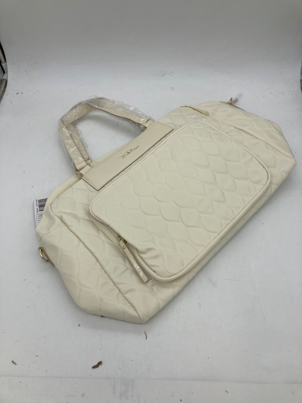 Bella Russo Quilted Ivory Handbag W/Multiple Pockets & Detachable Strap