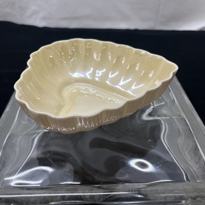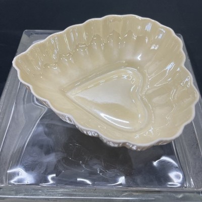 Belleek Ireland Candy Dish Heart Shaped Yellow Iridescent Green Mark 1965-80