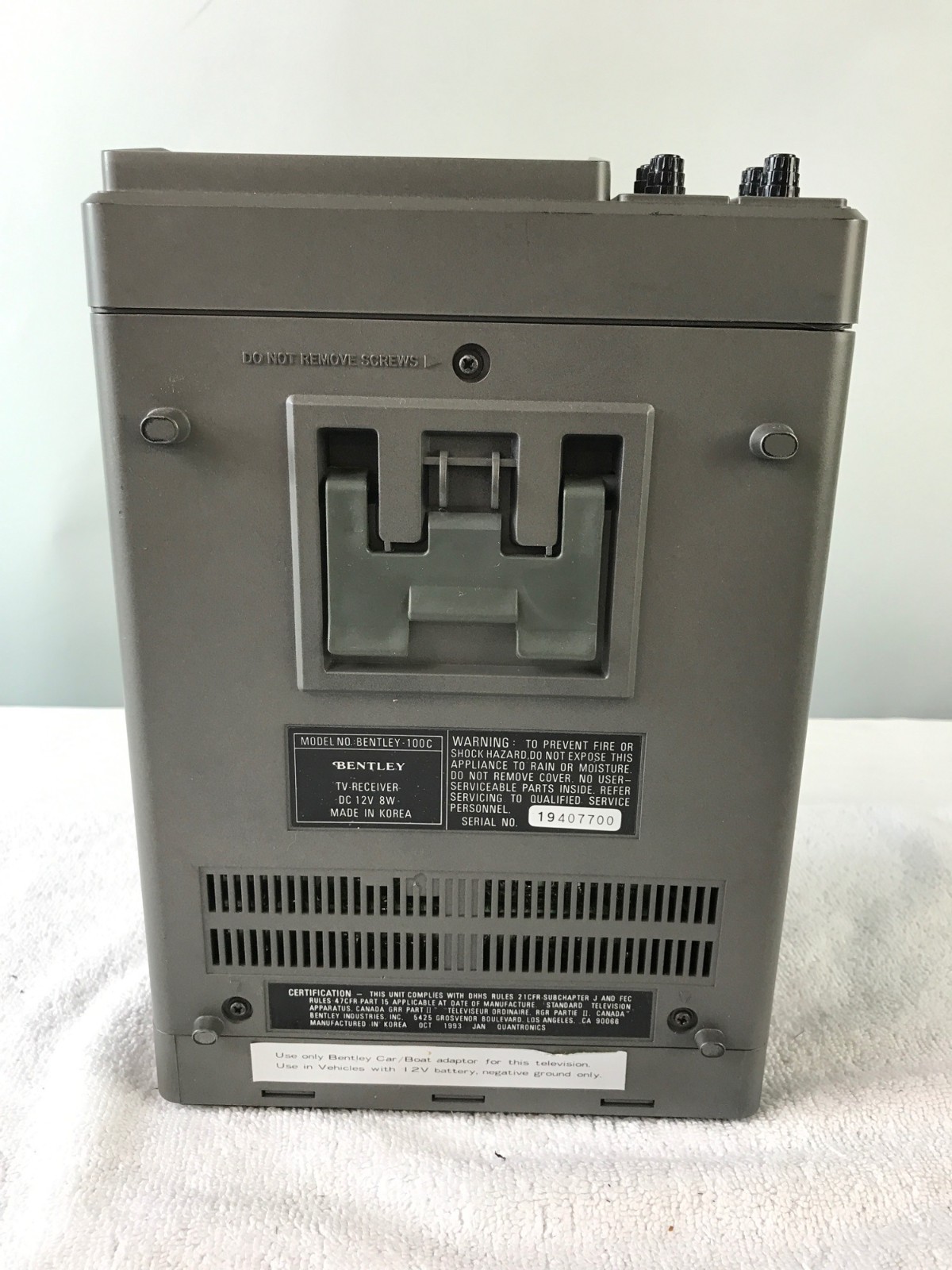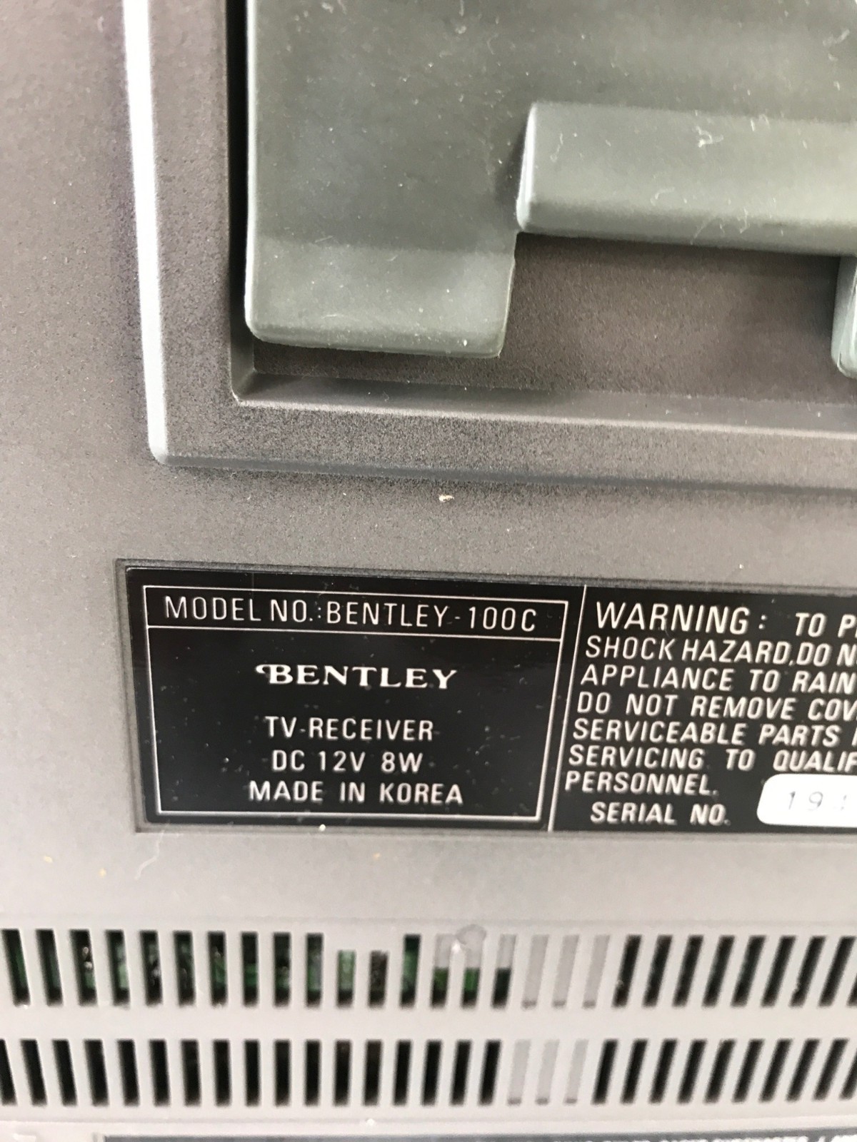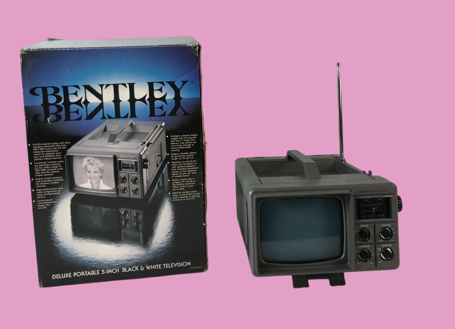 Bentley Deluxe Portable 5-Inch Black & White Television - Untested