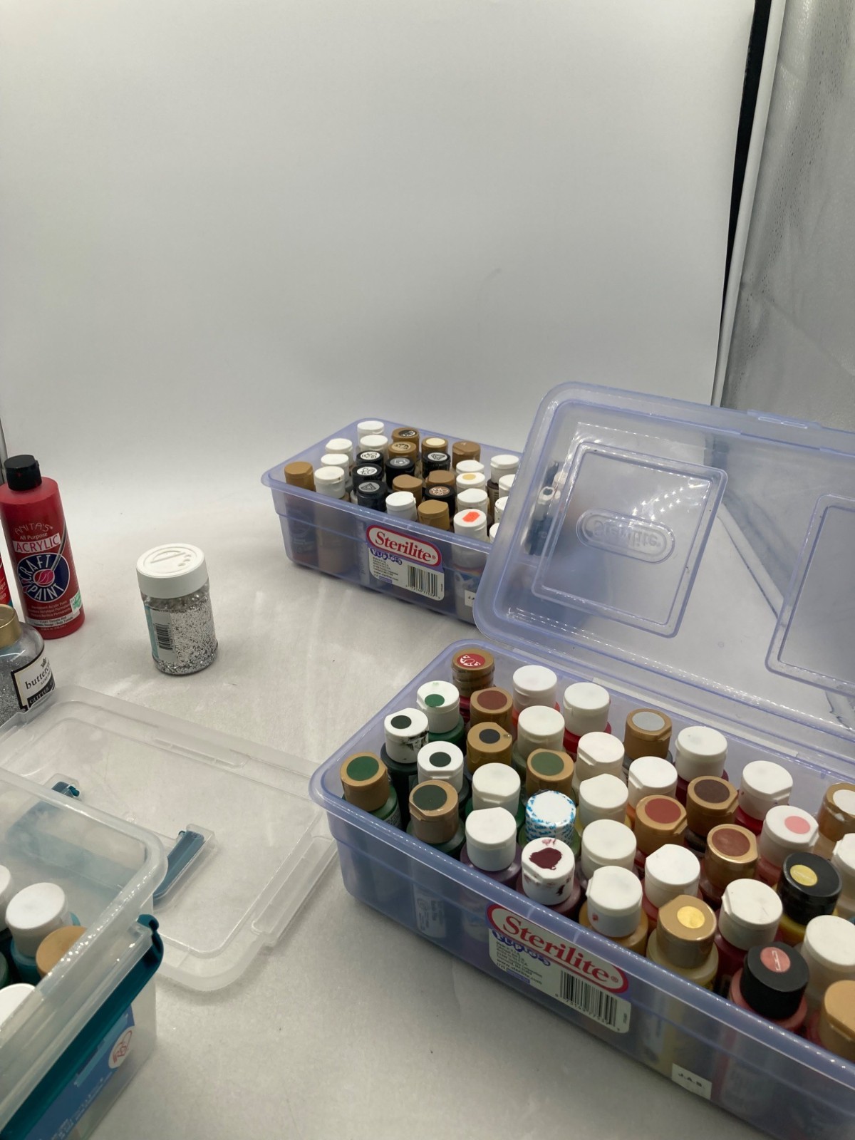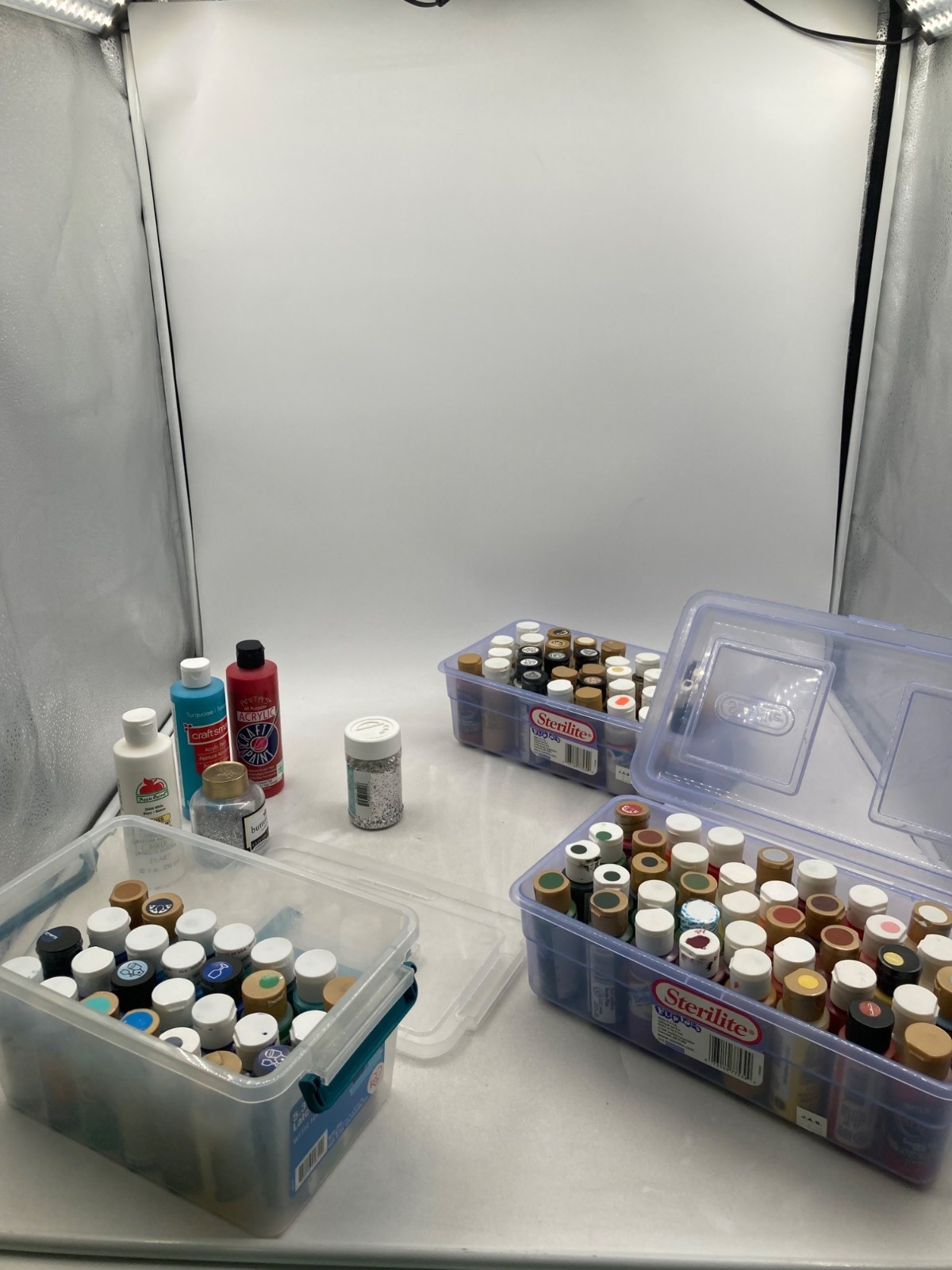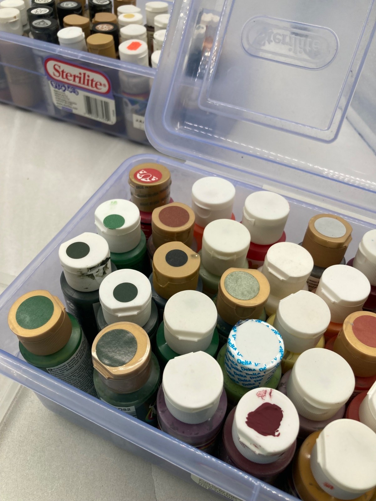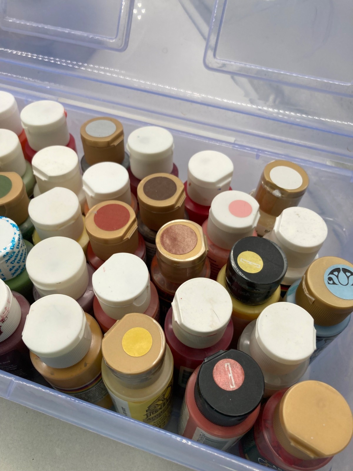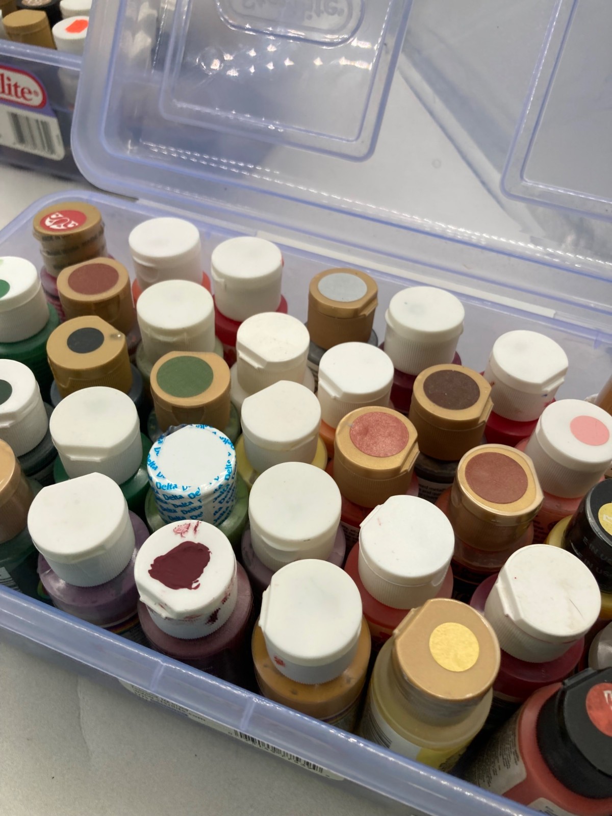 BIG LOT OF DIFFERENT COLOR ACRYLIC PAINTS SOME NEW SOME USED