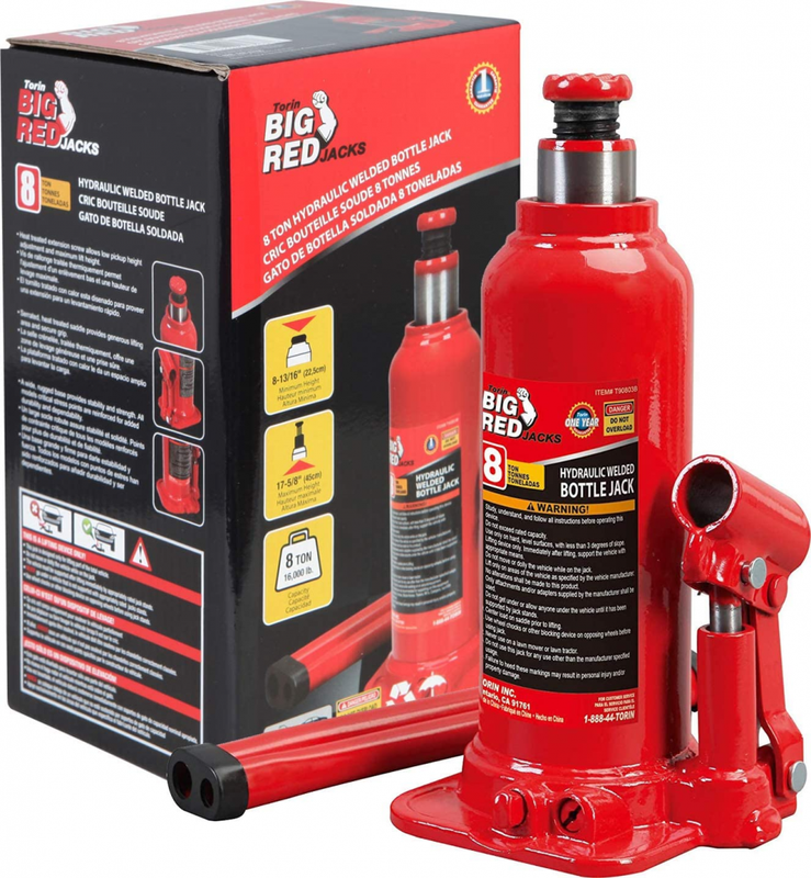 BIG RED TAM90803B Torin Hydraulic Welded Bottle Jack, 8 Ton (16,000 LBs), Red