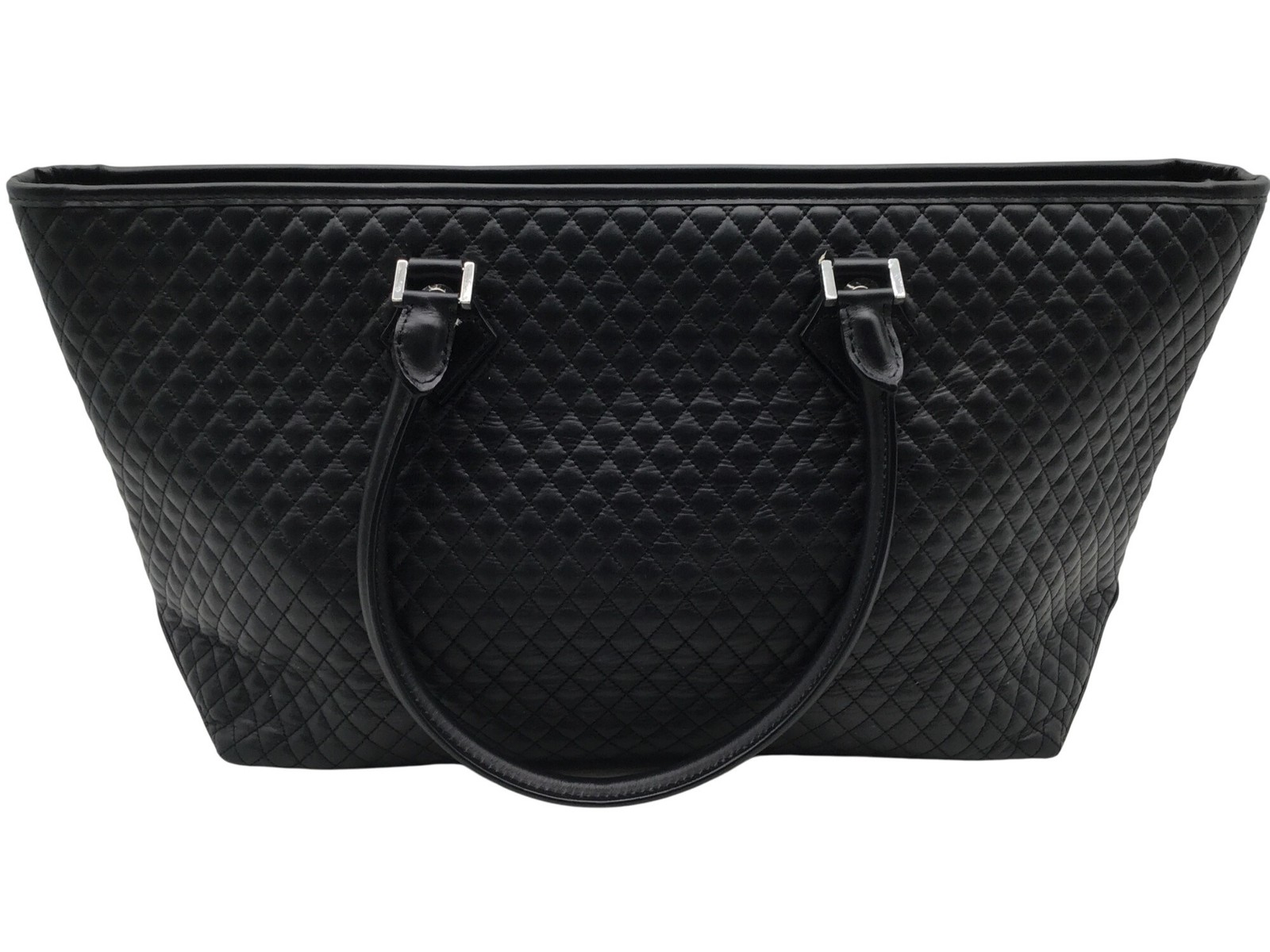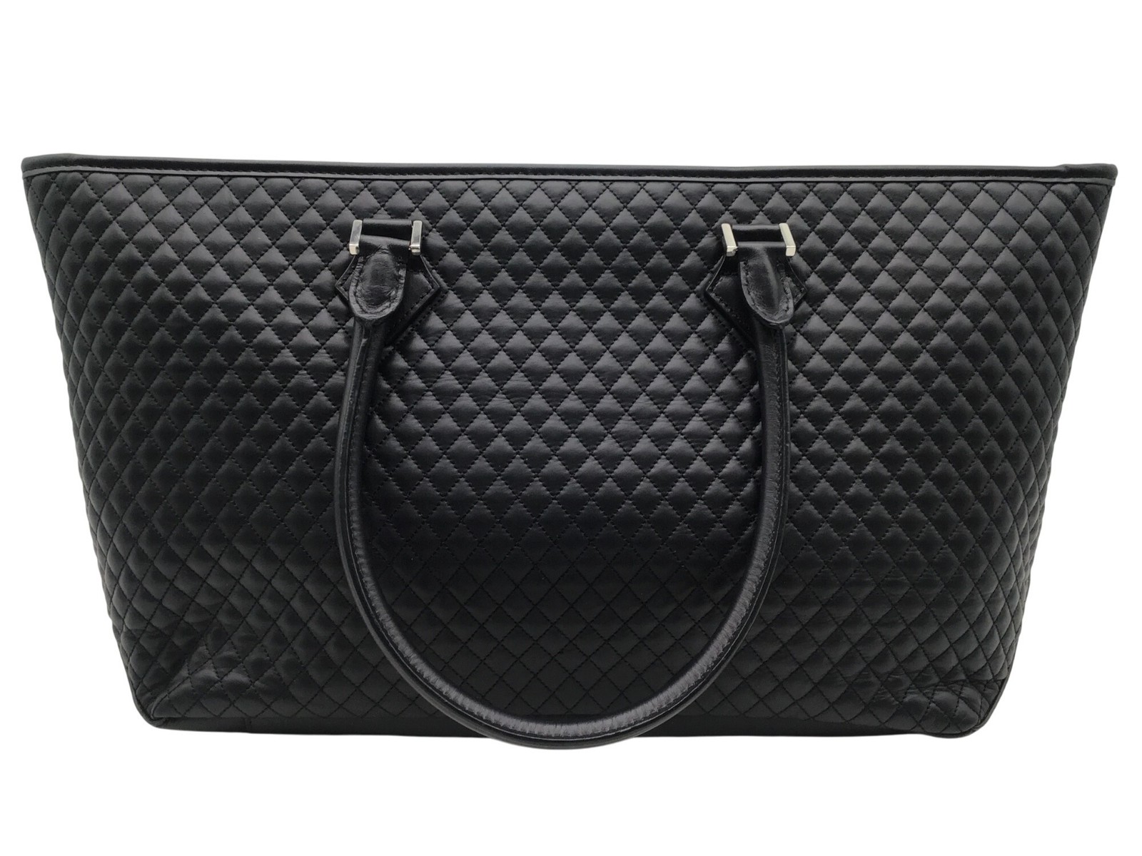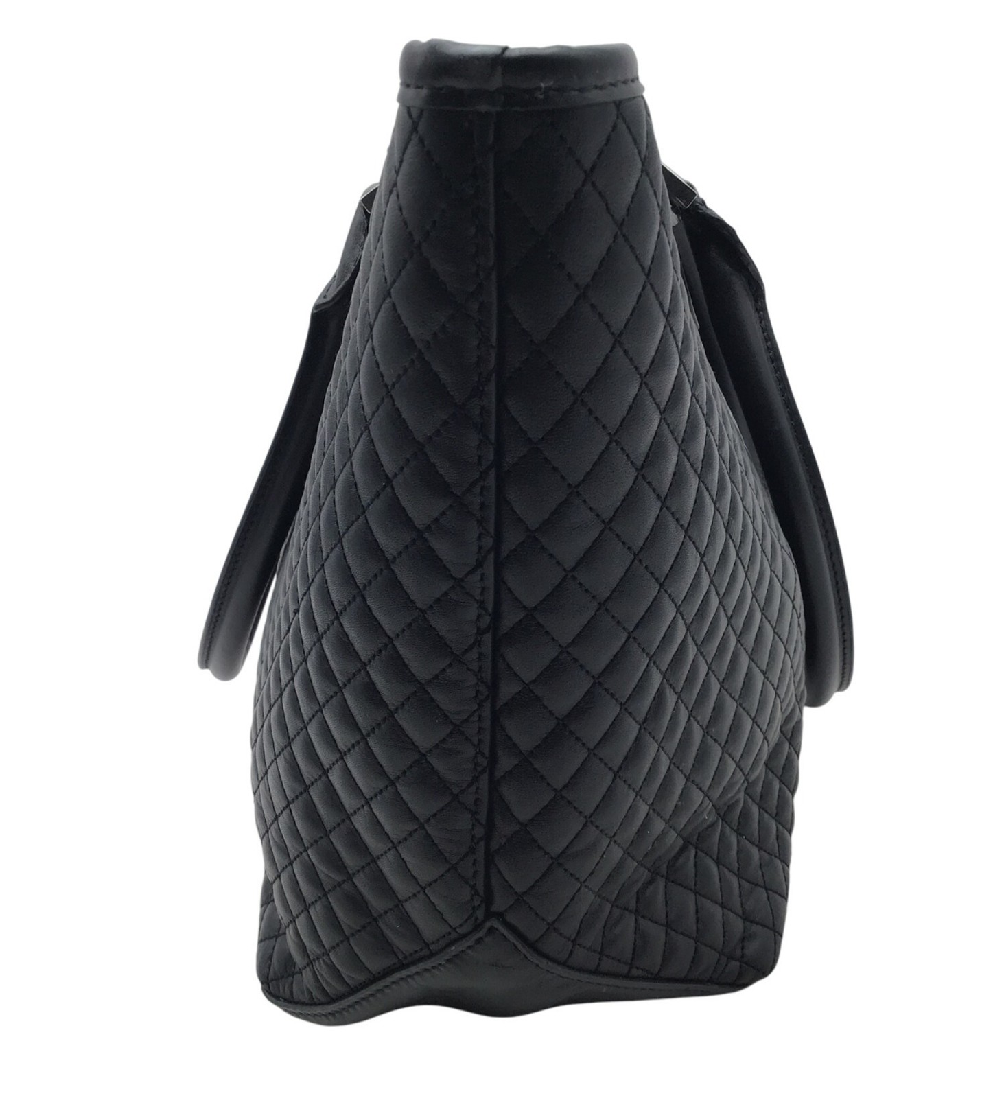Black Quilted Brooks Brothers Tote Bag With Dual Handles & Top Zipper Closure