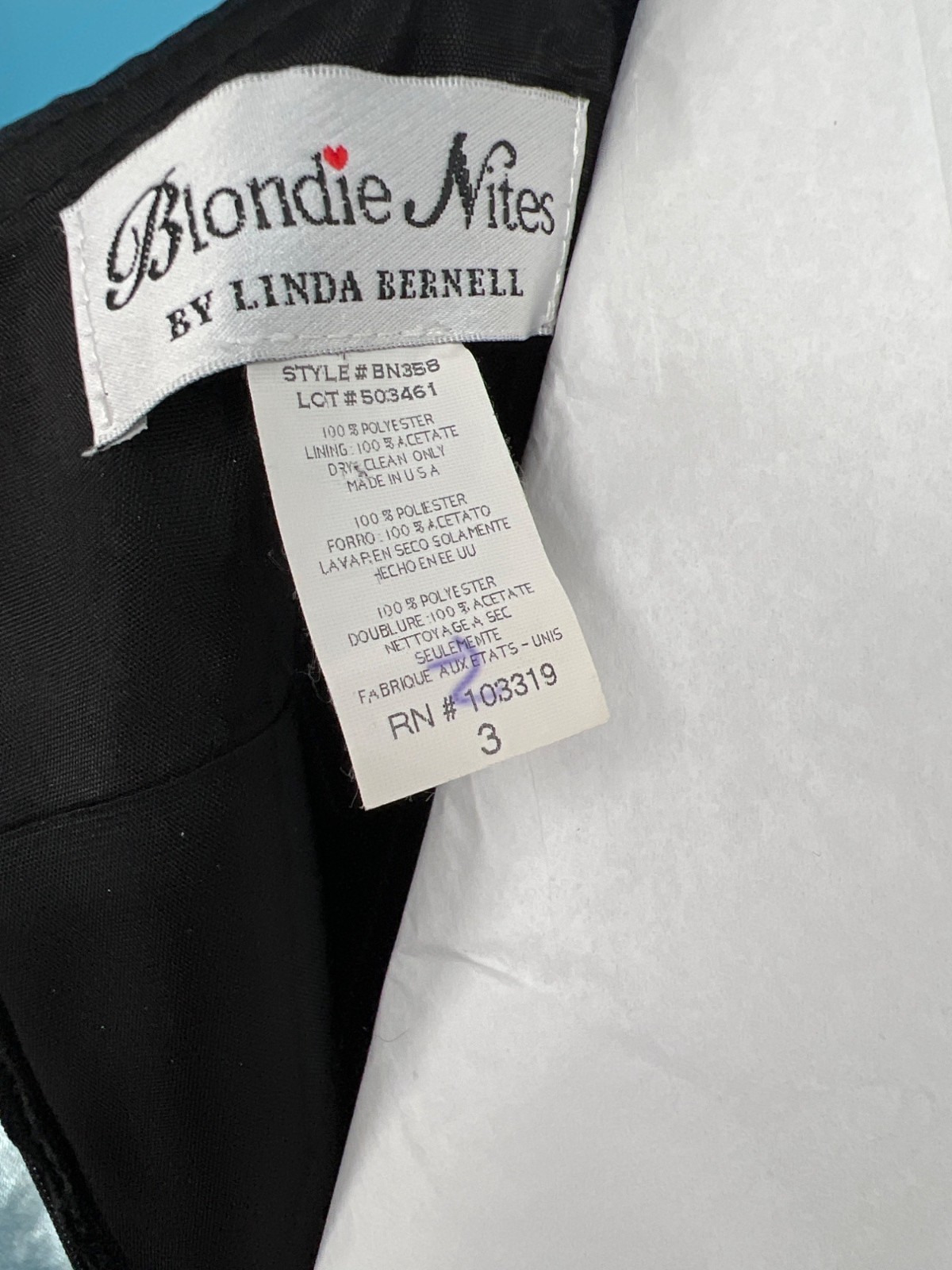 BLONDIE NITES Little Black Dress w/ Gold Bow Size 3