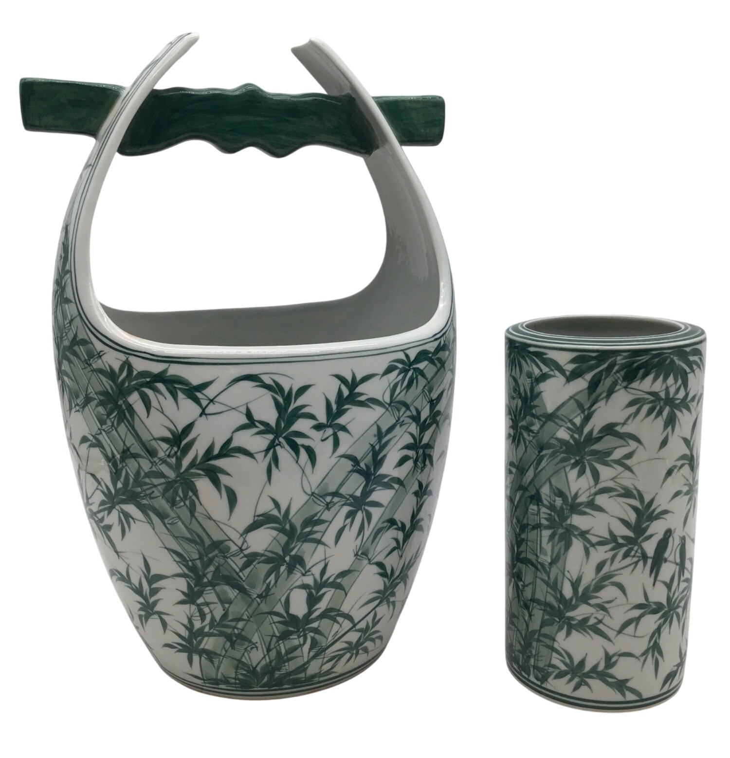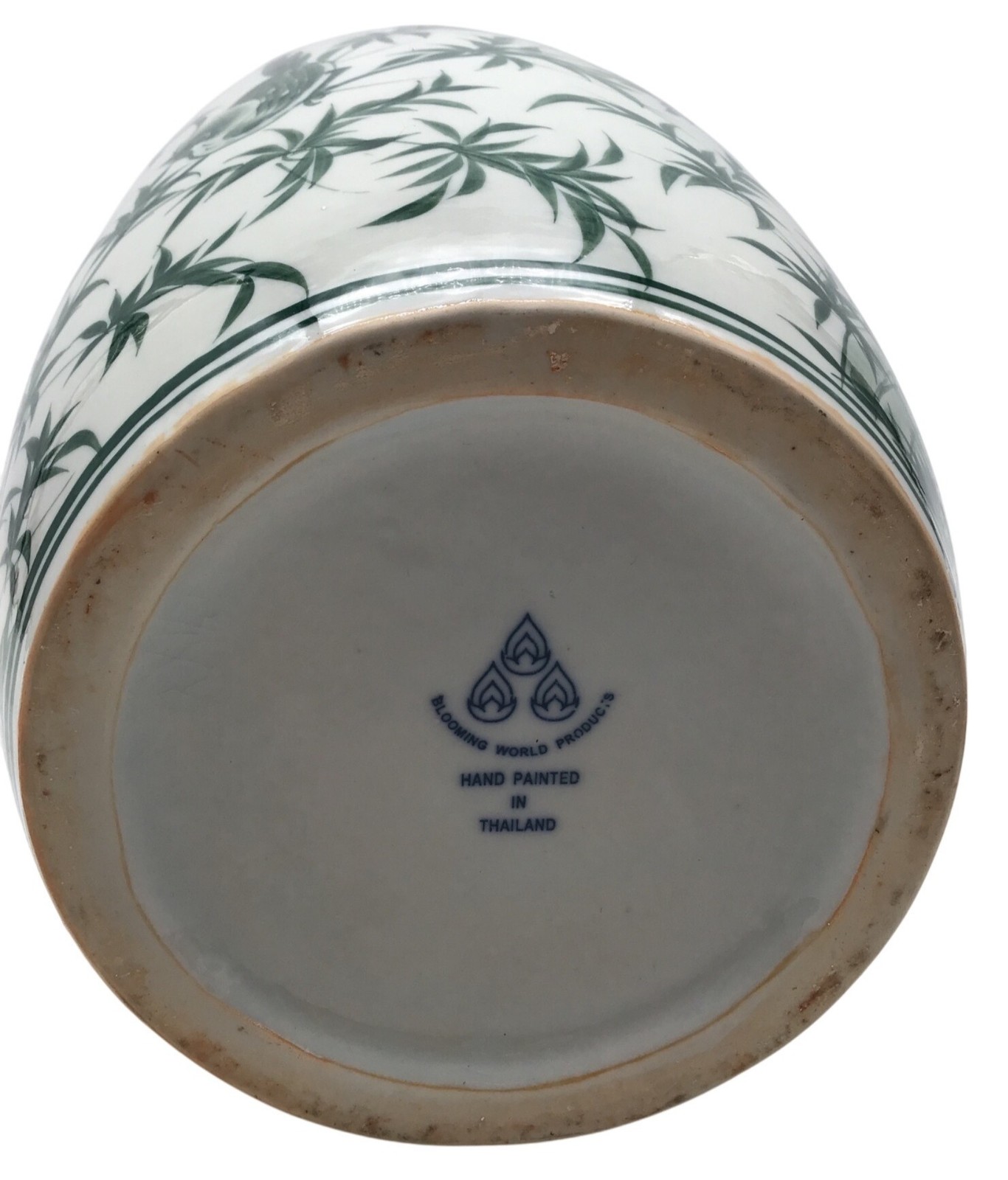 Blooming World Hand Painted Ceramic Vase & Cylinder Set - Bamboo Design Thailand