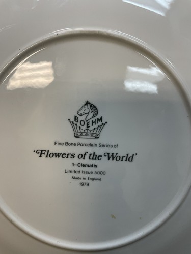 Boehm Collector Plate Flowers of the World CLEMATIS/RHOD Boehms 1979 10.75 EUC