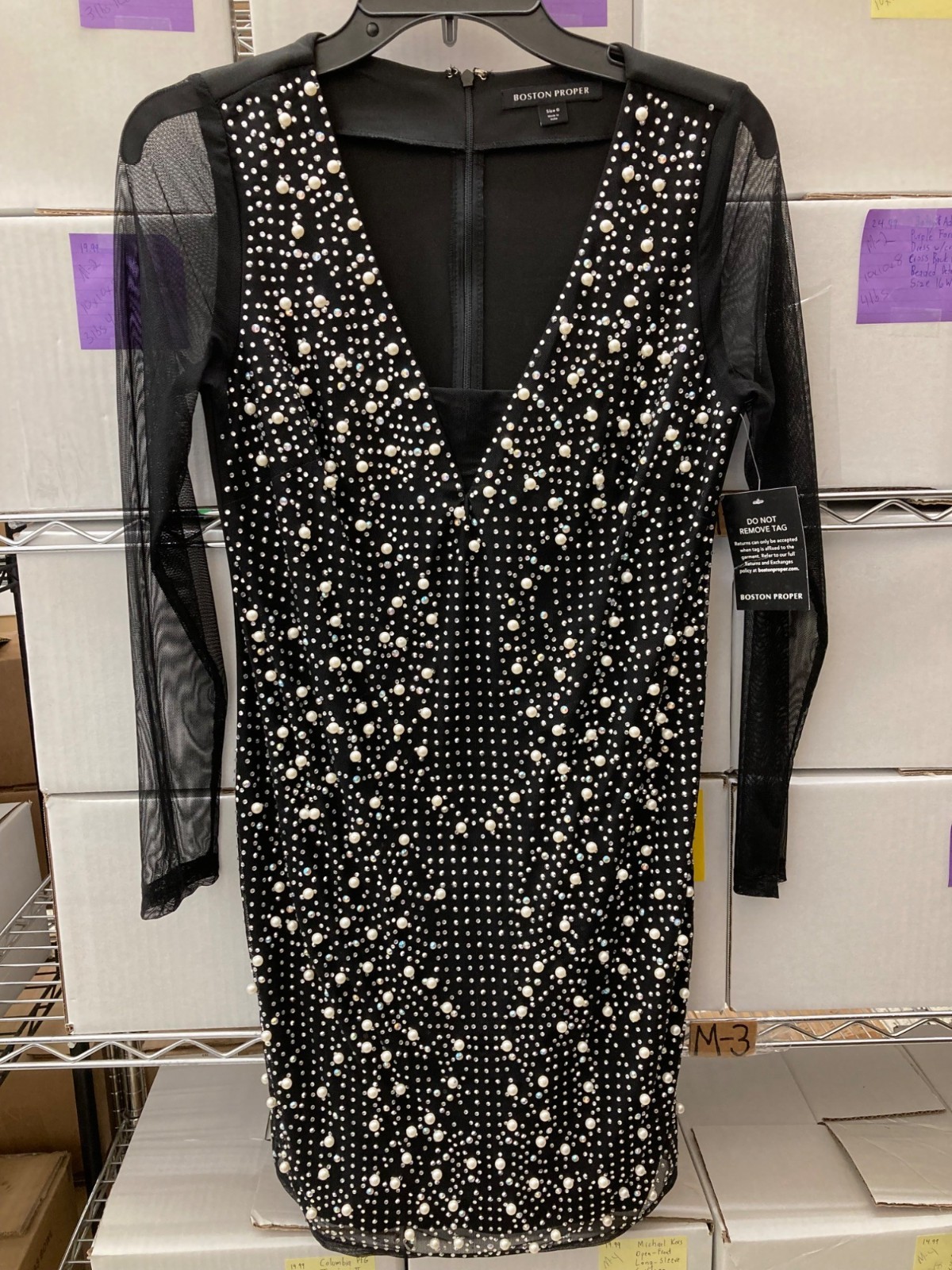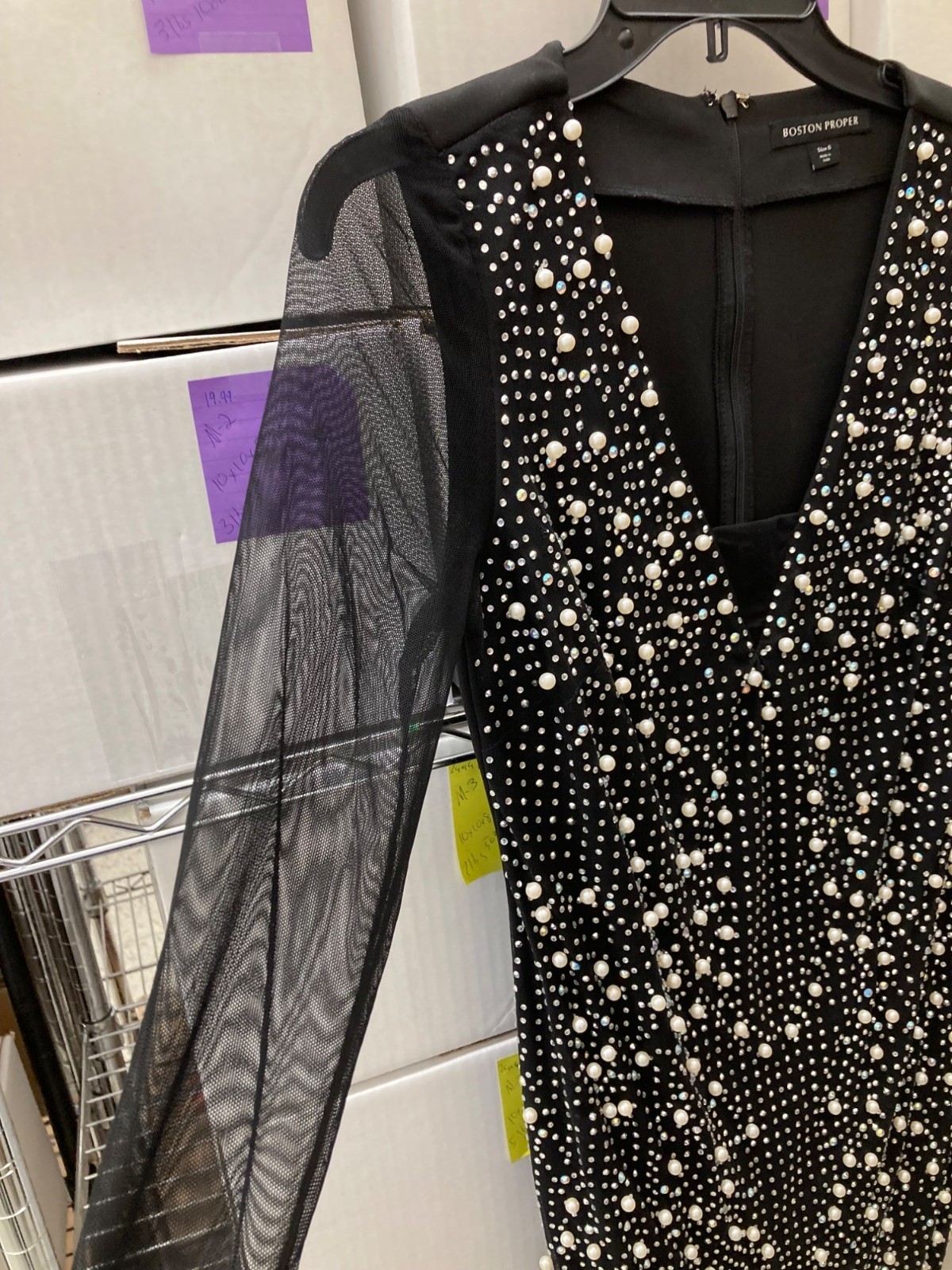 Boston Proper Black Pearl & Rhinestone Embellished Dress Size 6