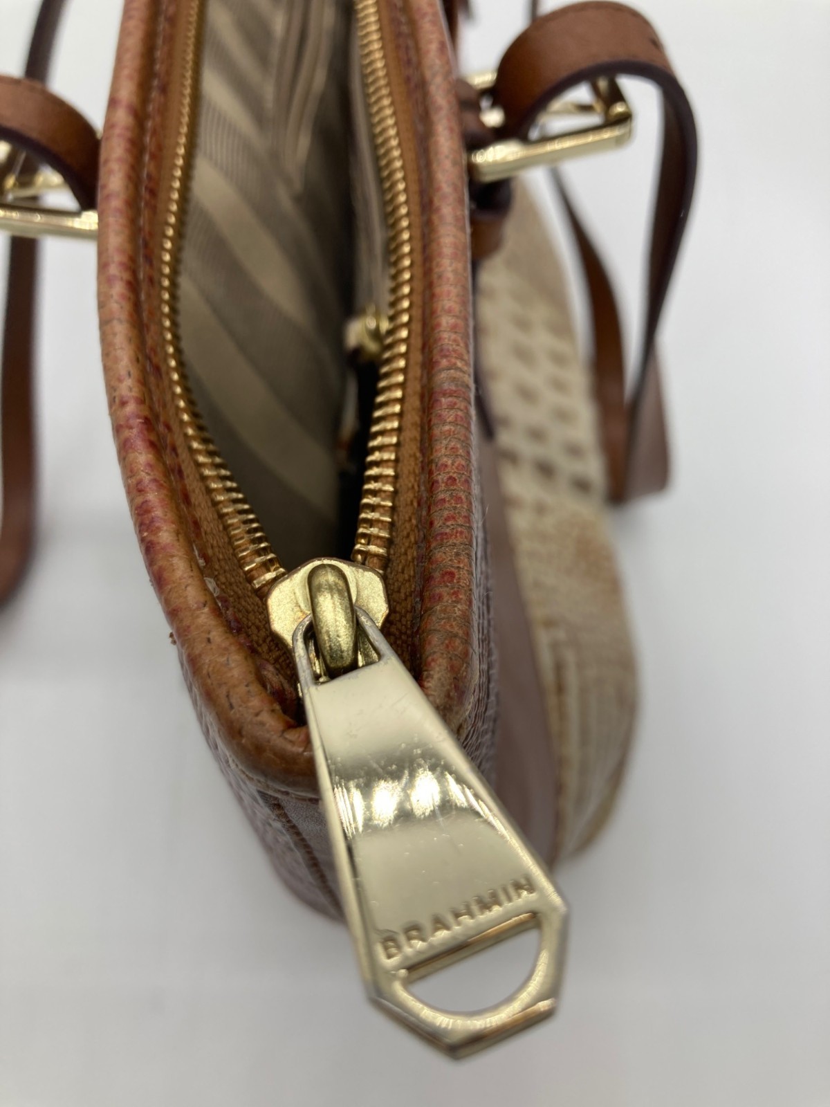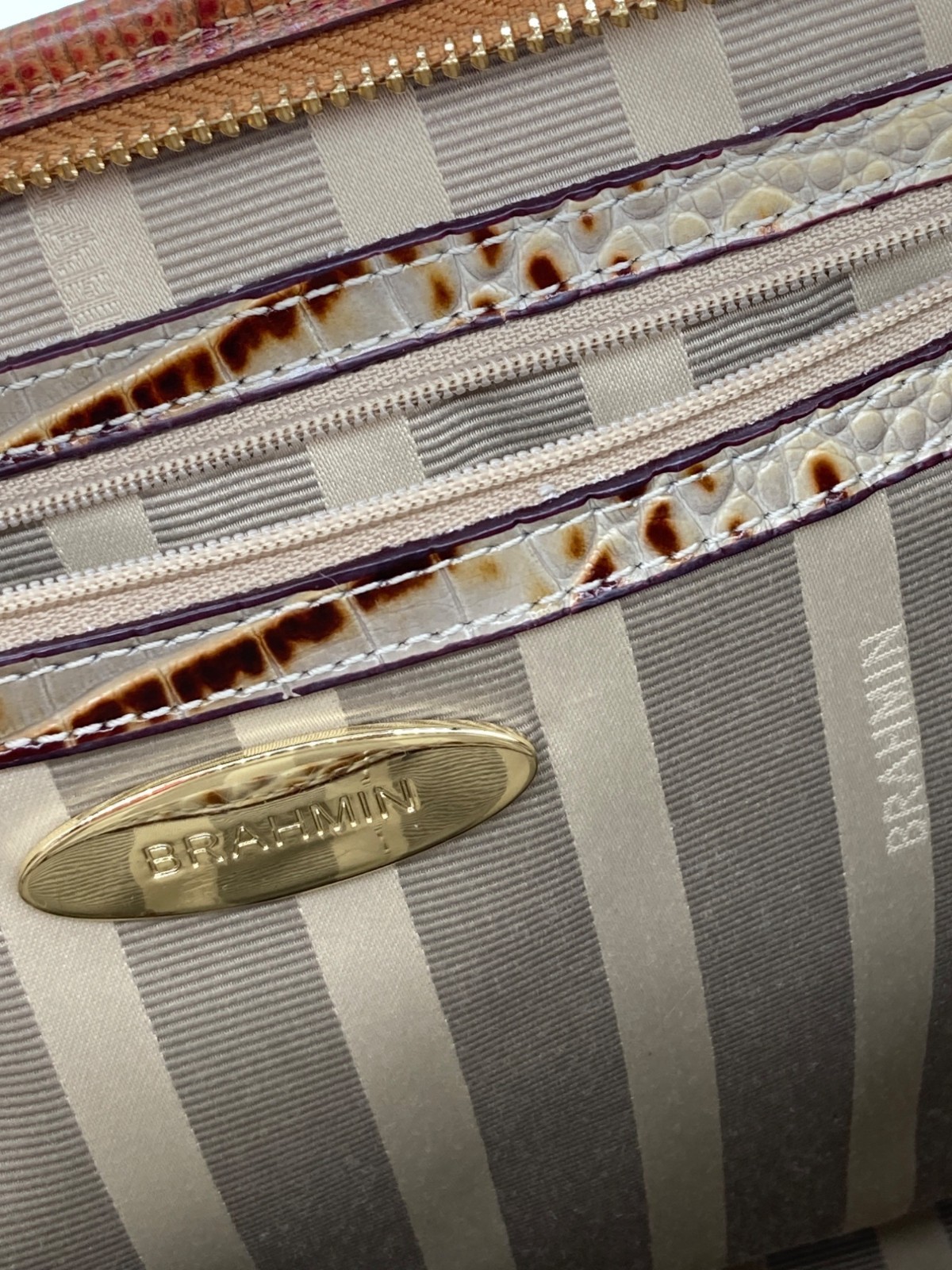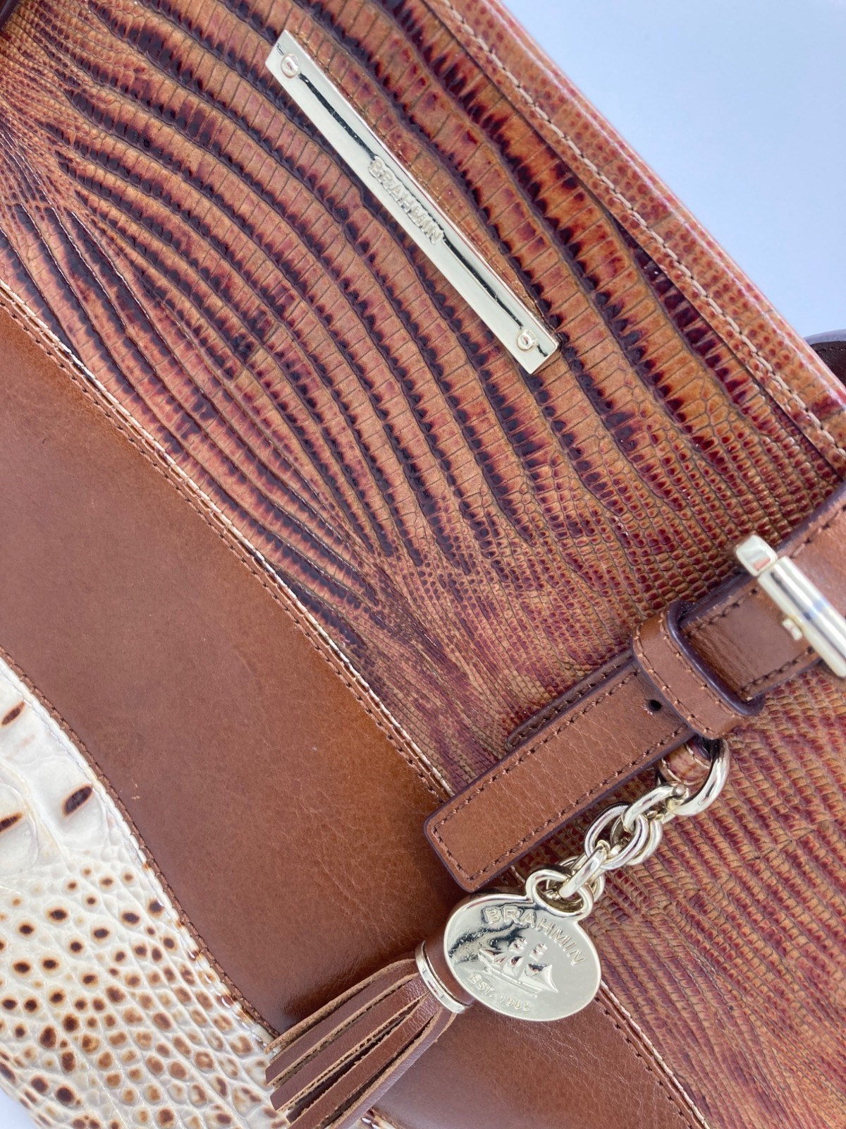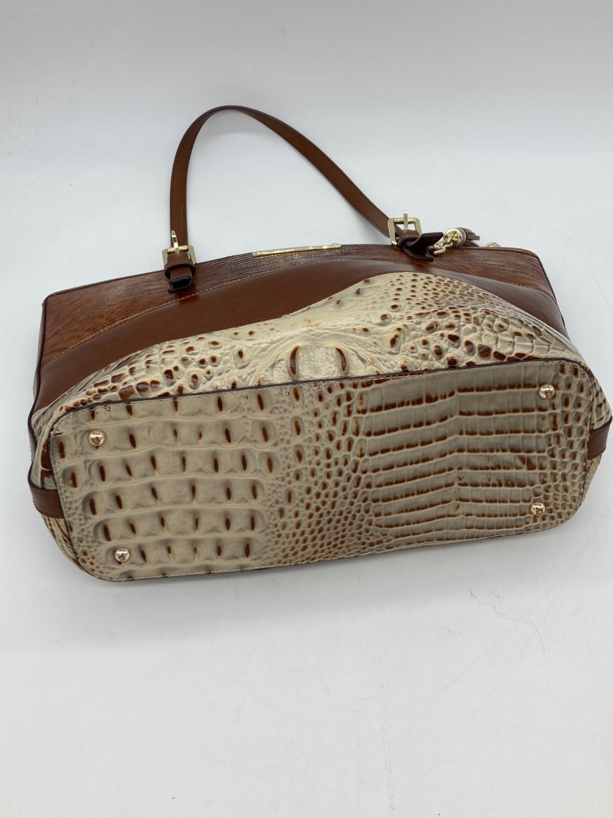 Brahmin Large Satchel Tote Bag In Brown & Cream Croc Embossed Leather With Gold