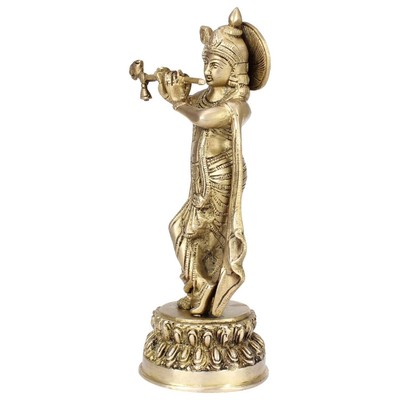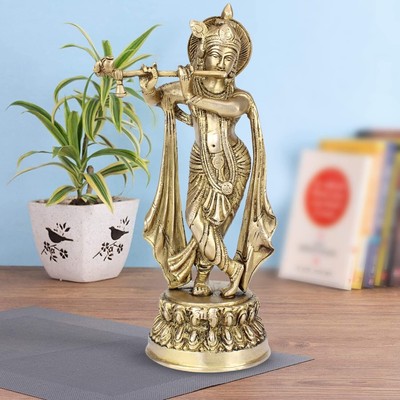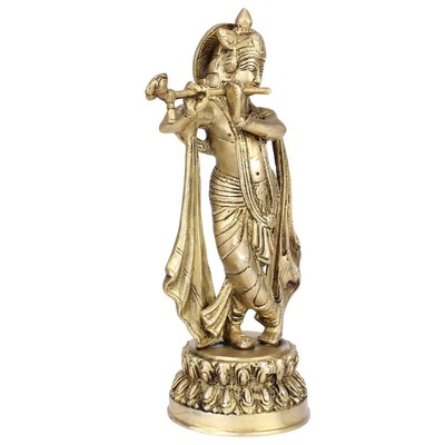Brass Krishna Idol Statue Playing Flute for Puja Mandir Krishna Murti Sculpture