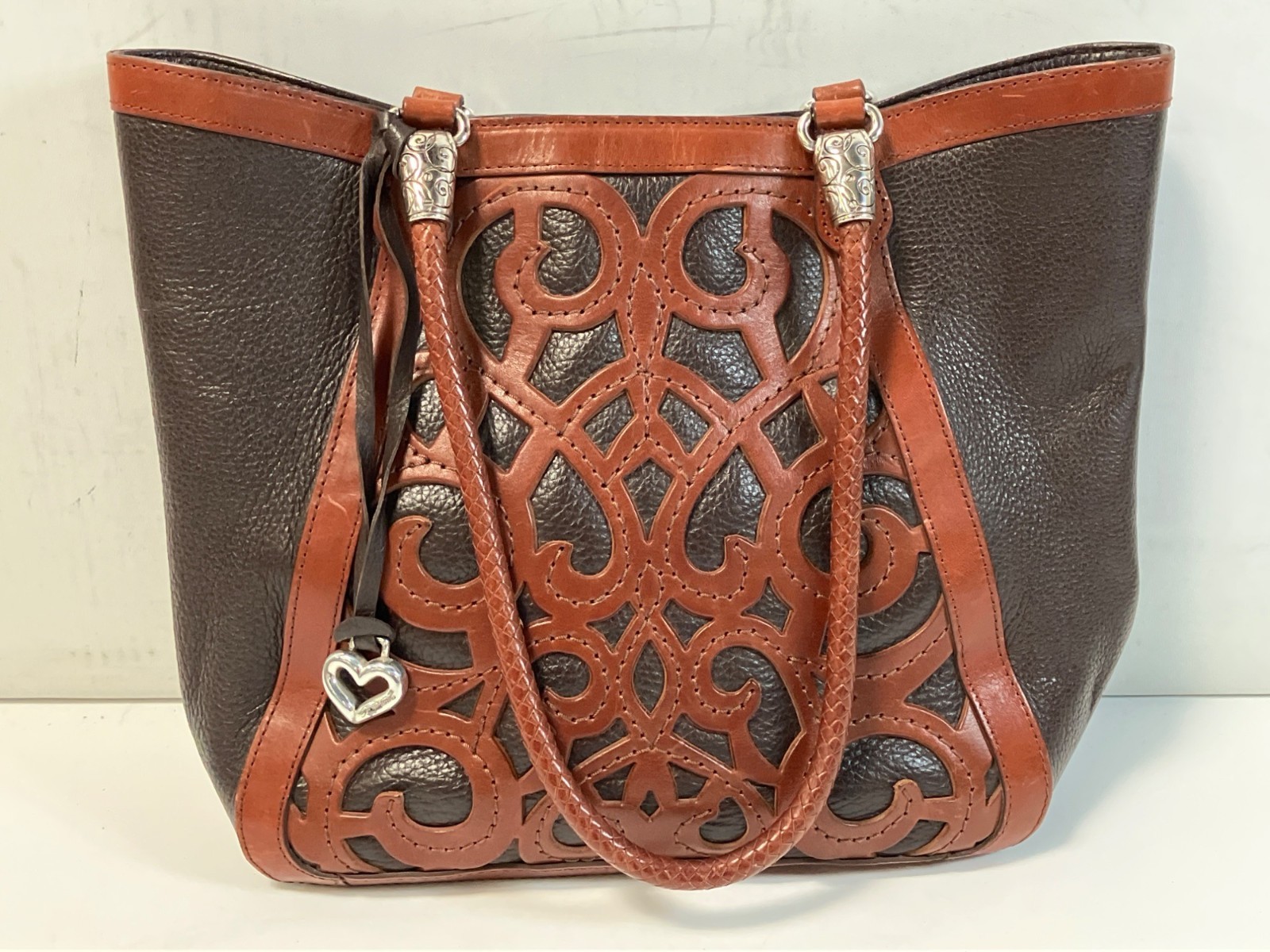 Brighton Genevieve Laser Cut Leather Tote Handbag 13.5"W x 11"L