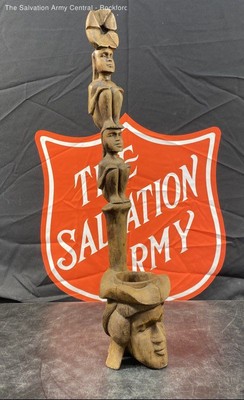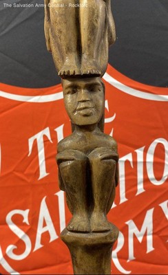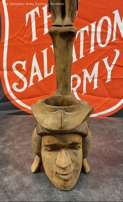Brown Wooden Indonesian Folk Art Hand Carved Tribal Totem Dipper Ladle