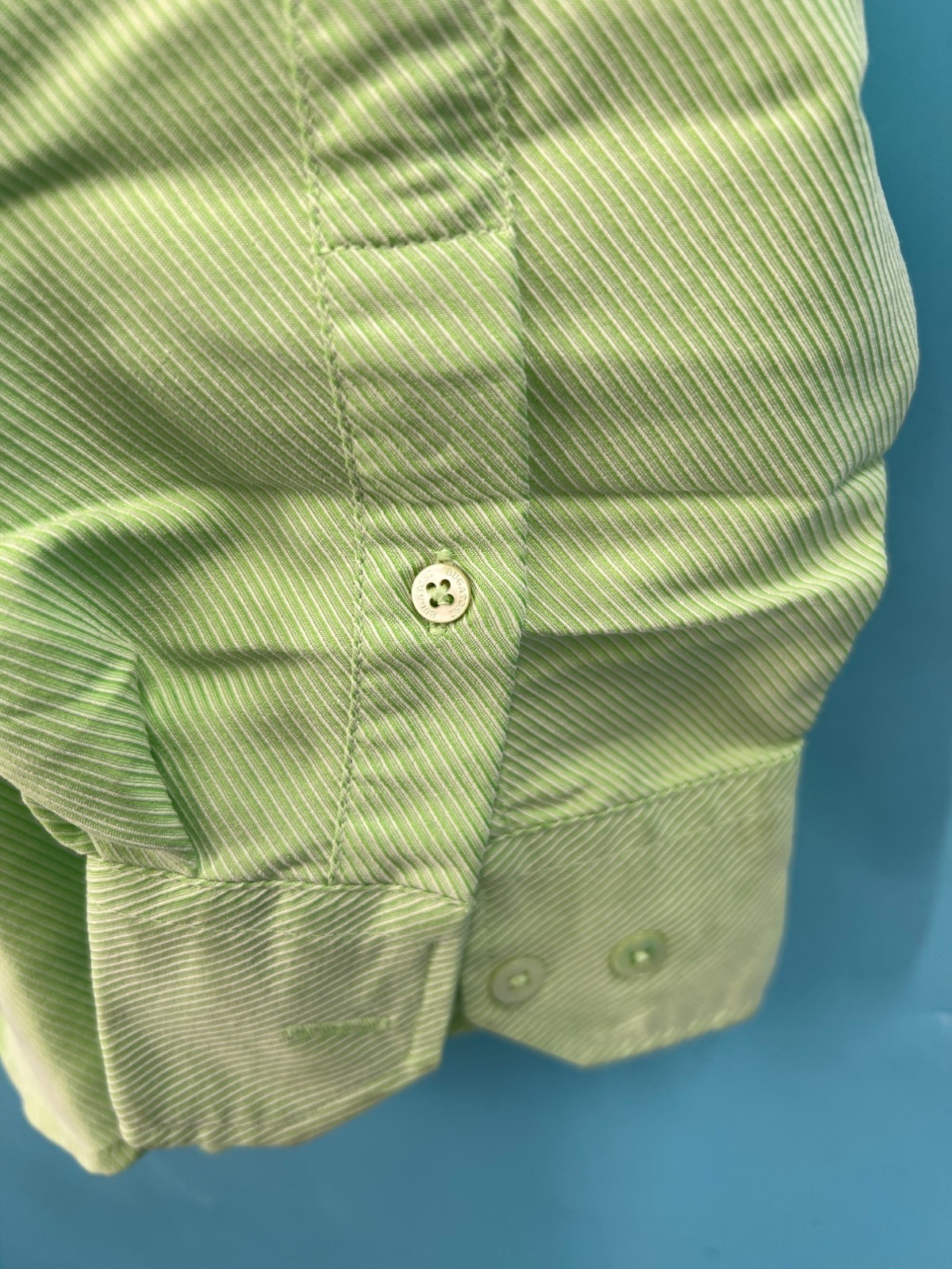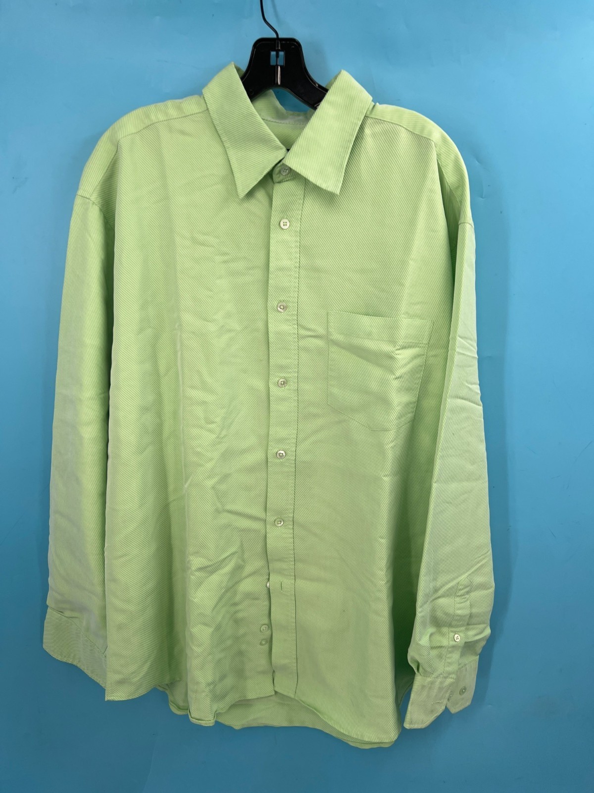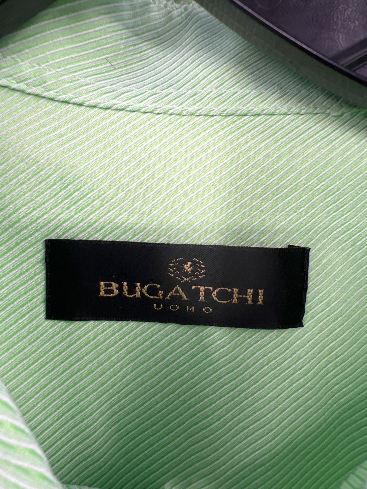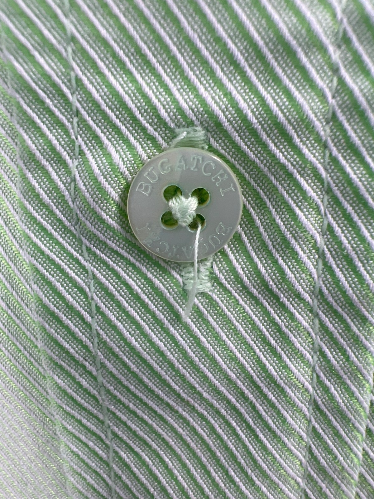 BUGATCHI Uomo Green White Stripe Rayon Blend Button-Up Shirt Men's Size XL