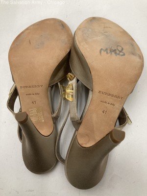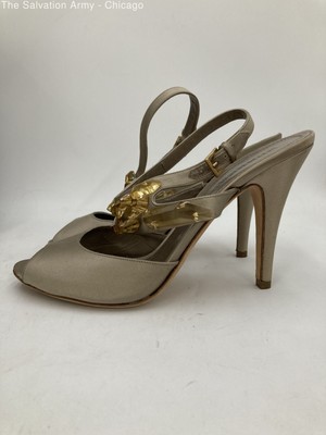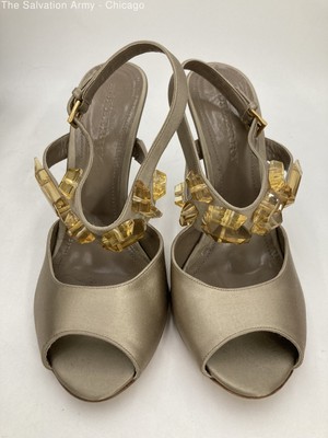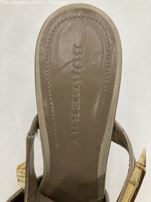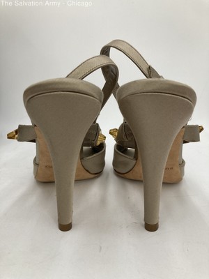 Burberry Womens Beige Peep Toe Rhinestone Stiletto Slingback Heels Size 11