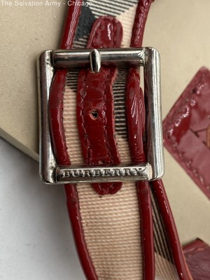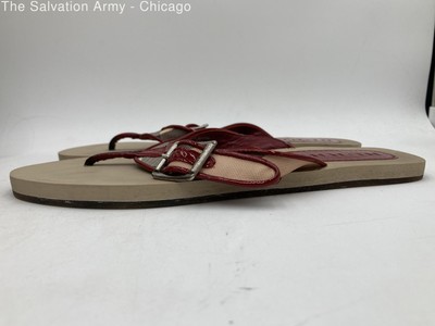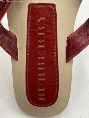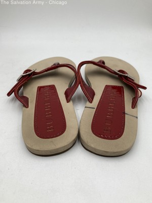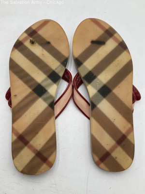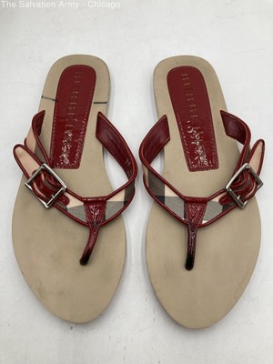 Burberry Womens Red Tan Casual Slip On Thong Sandal Size US 7.5 With COA